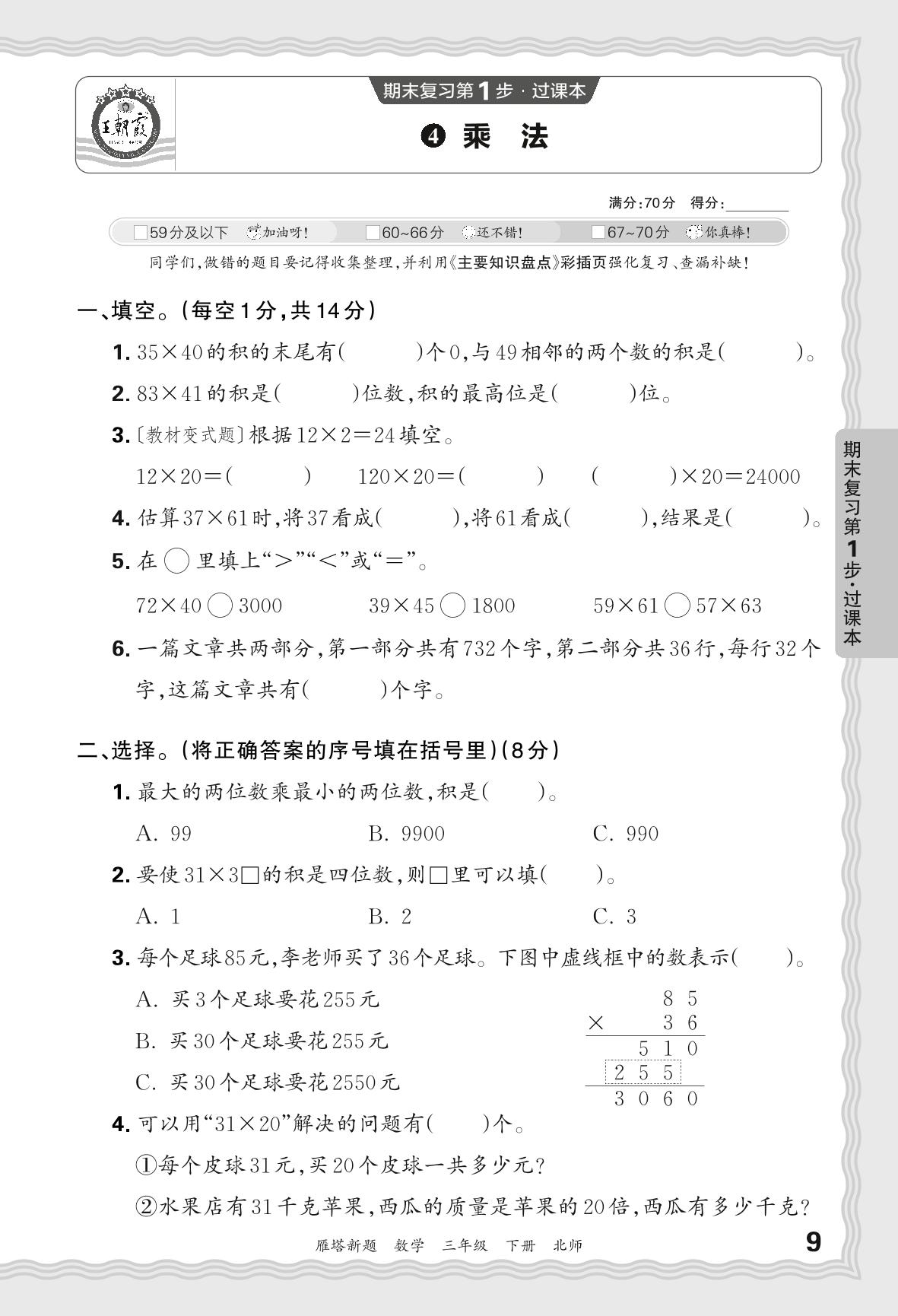 2024春下册三年级数学北师版 期末过课本西安版·乘法【4】