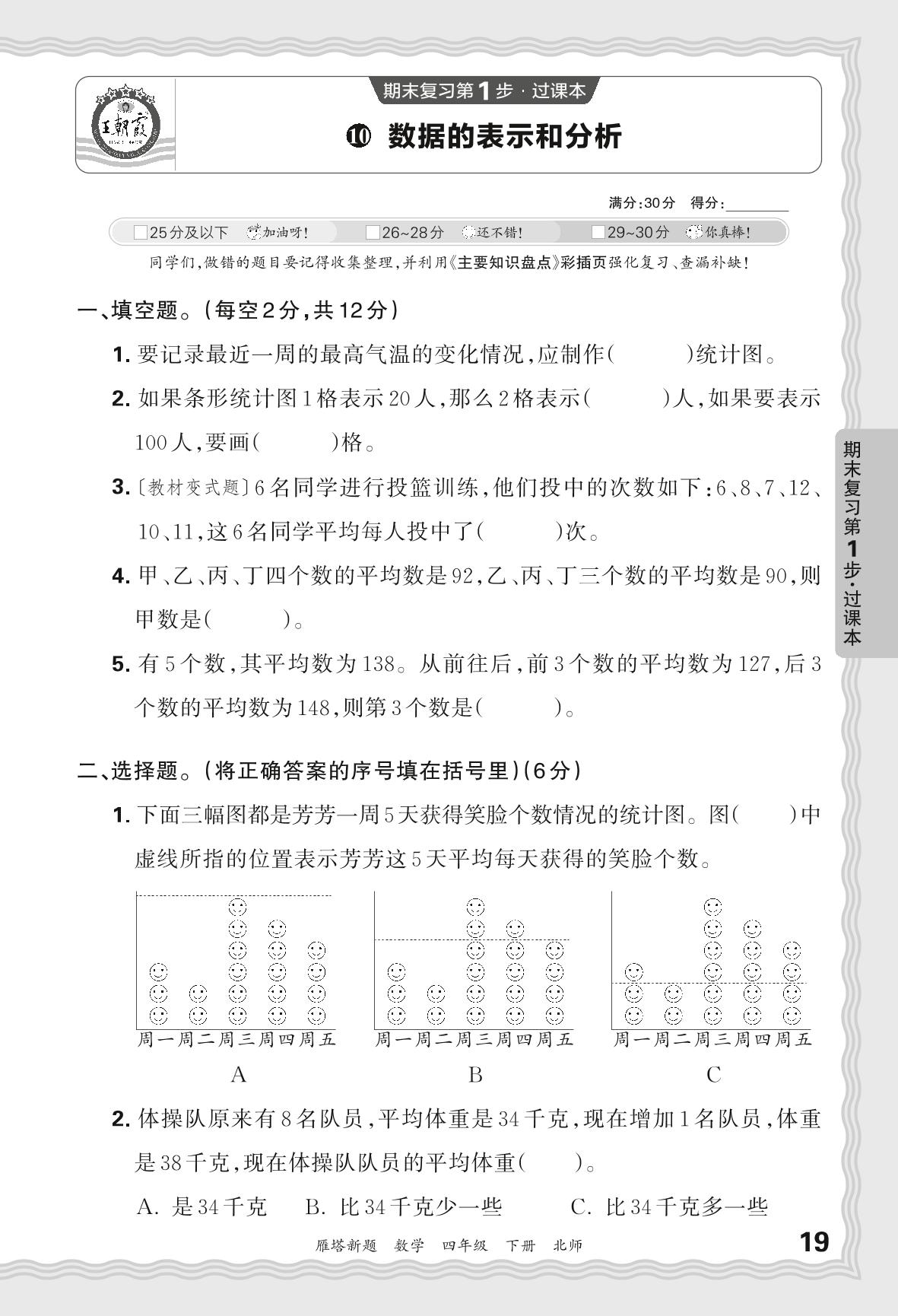 2024春下册四年级数学北师版 期末过课本西安版·数据的表示和分析【10】
