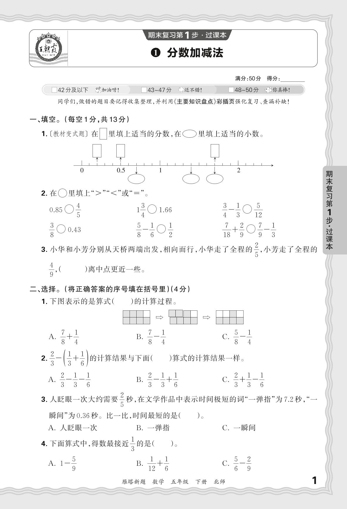 2024春下册五年级数学北师版 期末过课本西安版·分数加减法【1】