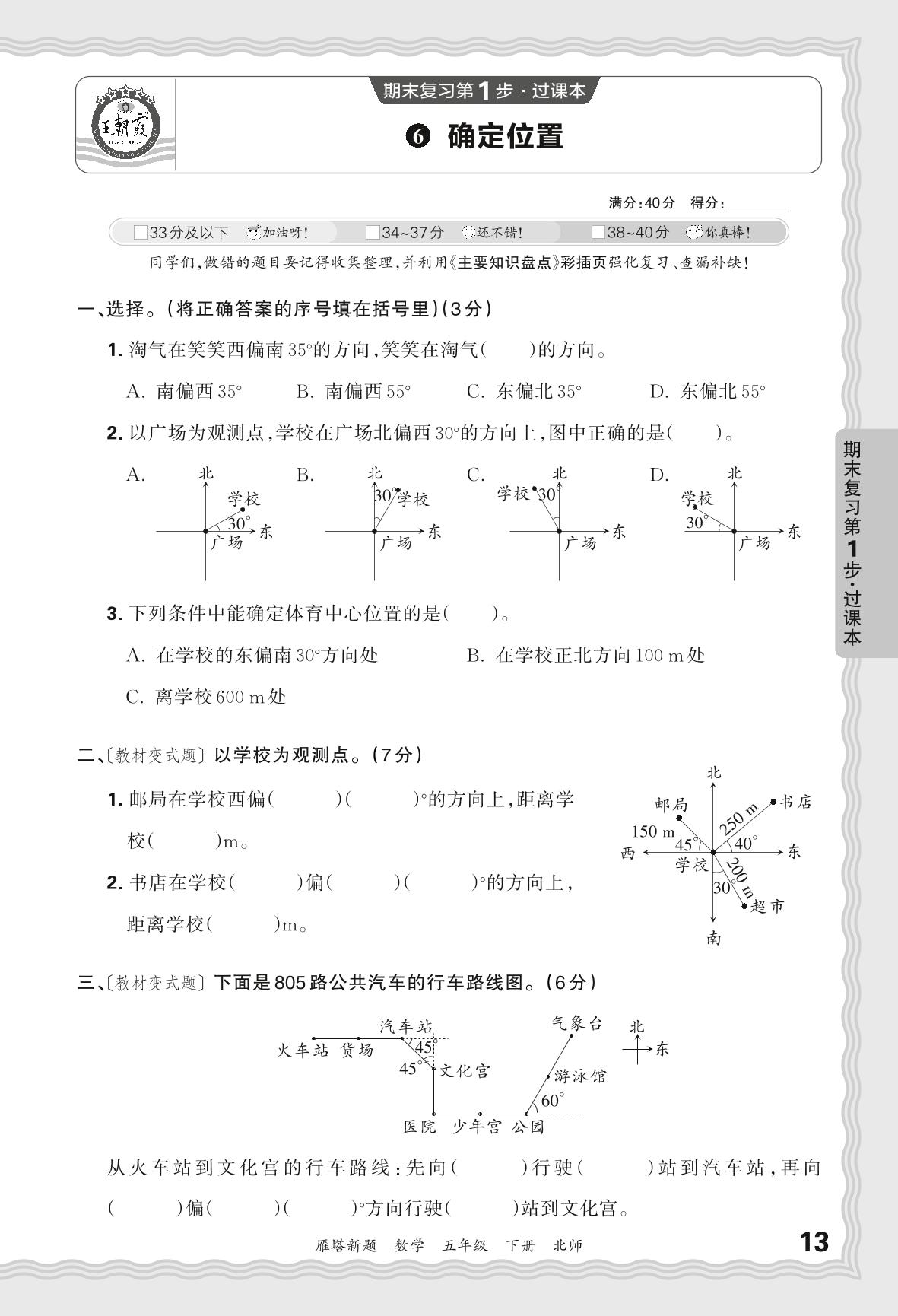 2024春下册五年级数学北师版 期末过课本西安版·确定位置【6】