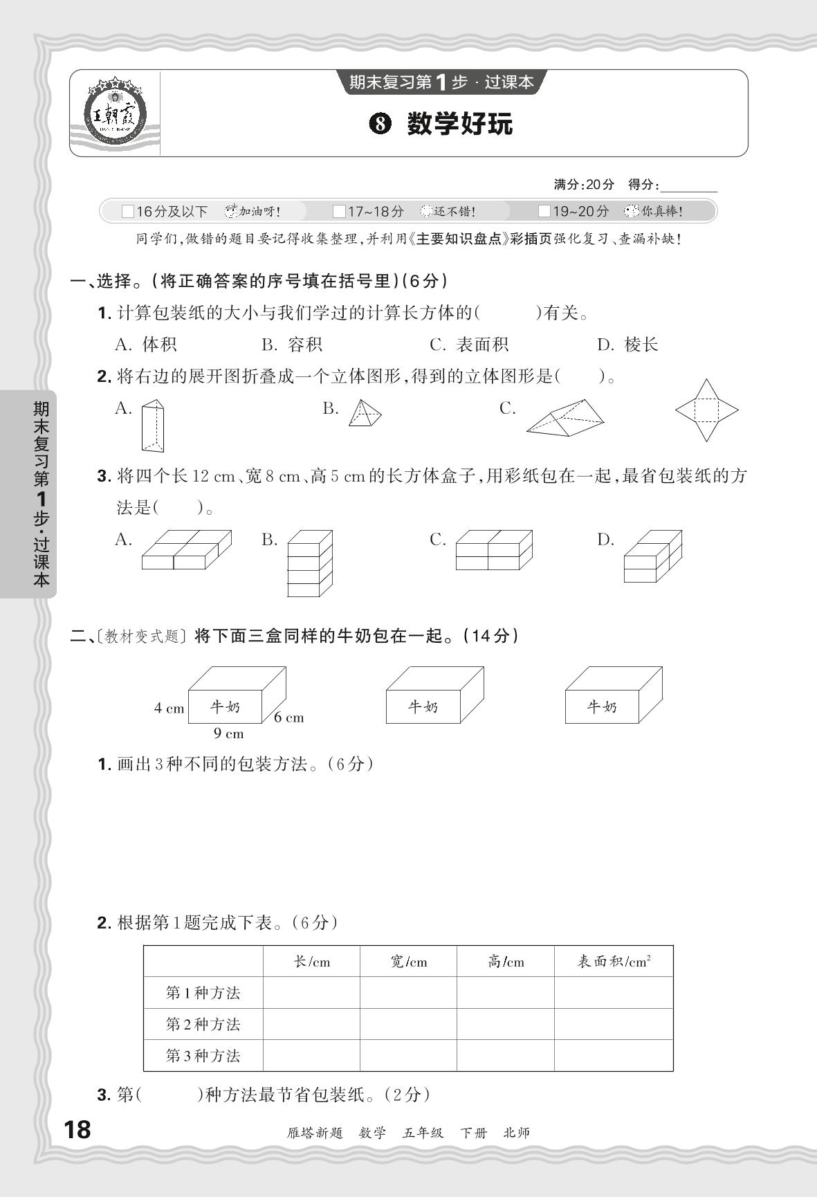 2024春下册五年级数学北师版 期末过课本西安版·数学好玩【8】