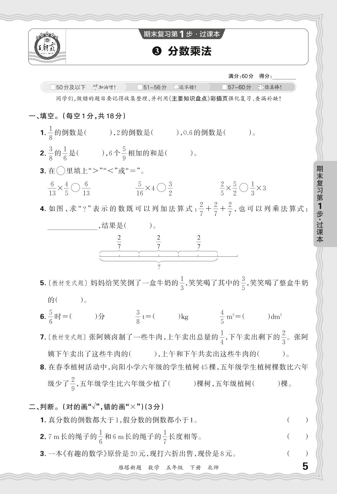 2024春下册五年级数学北师版 期末过课本西安版分数乘法【3】