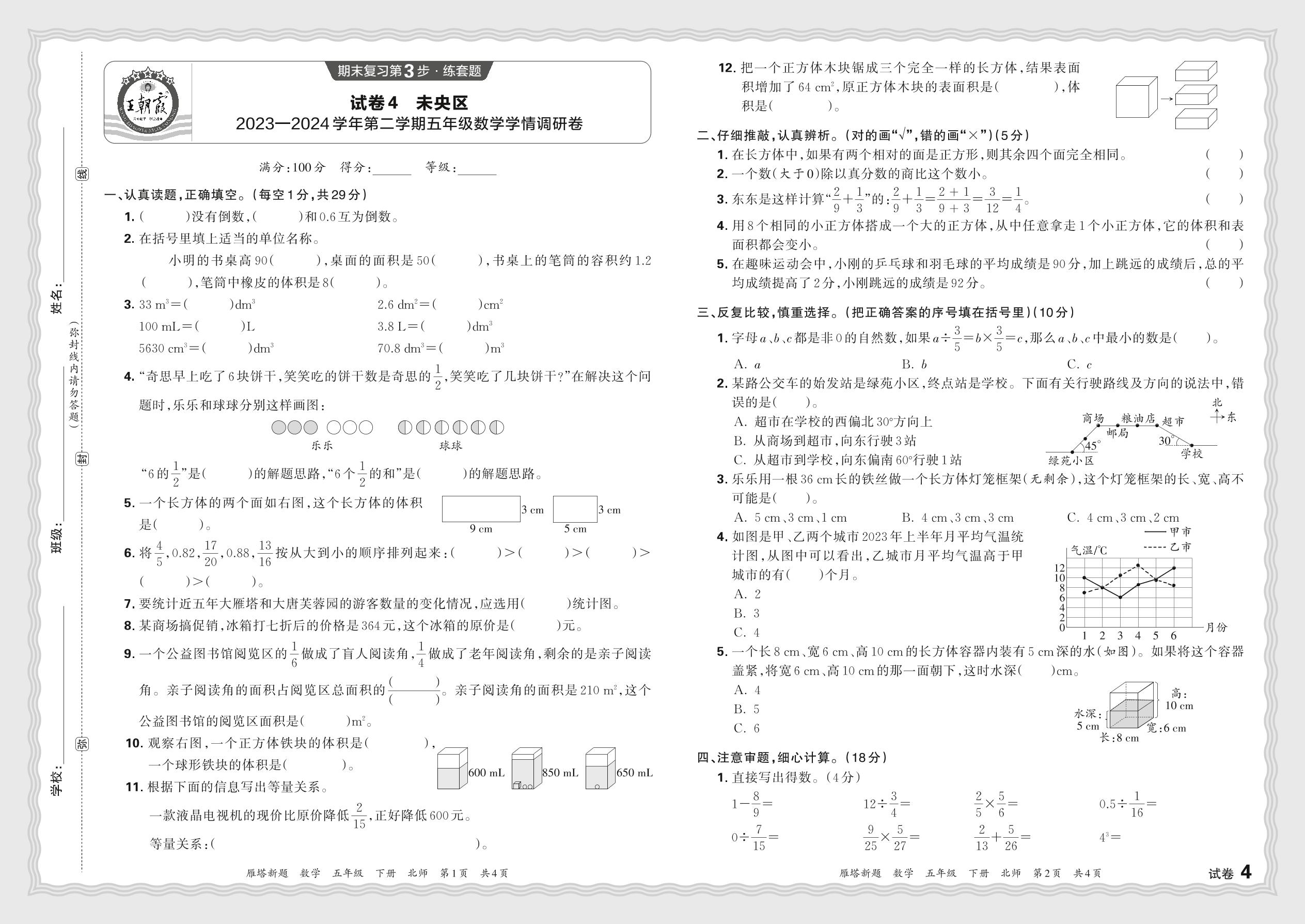 五年级数学北师版下册期末卷
