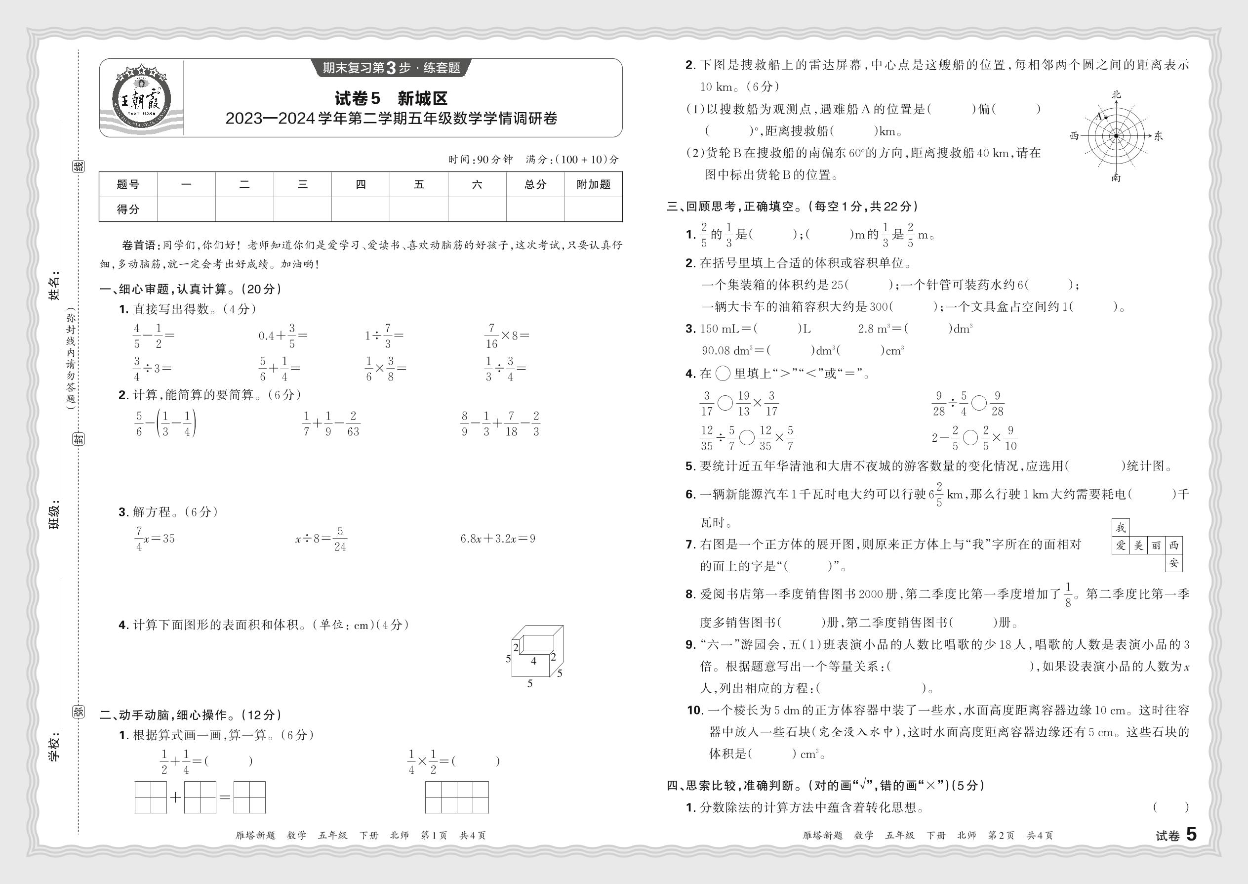 陕西省西安市新城区2023—2024学年第二学期五年级数学学情调研卷(北师版)【5】