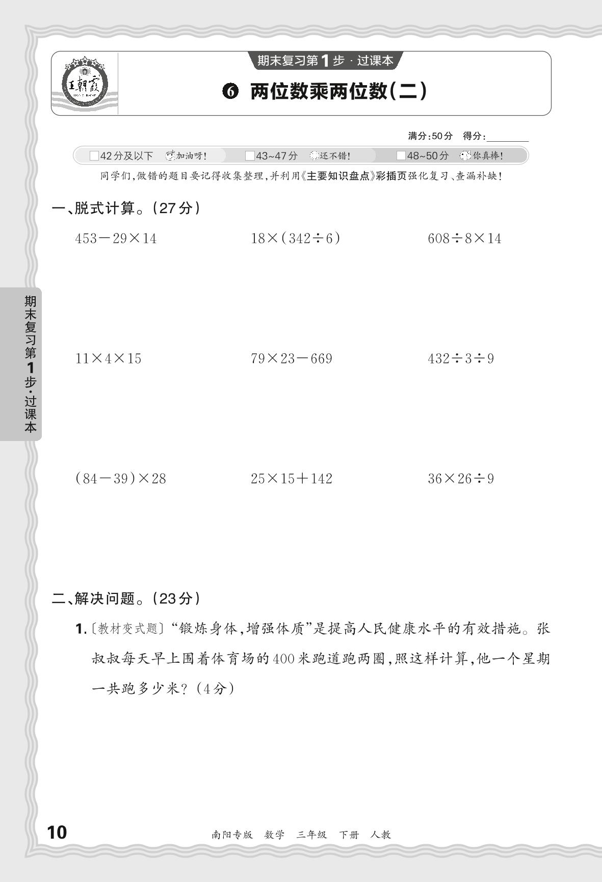 2024春下册三年级数学人教版 期末过课本南阳版·两位数乘两位数(二)【6】