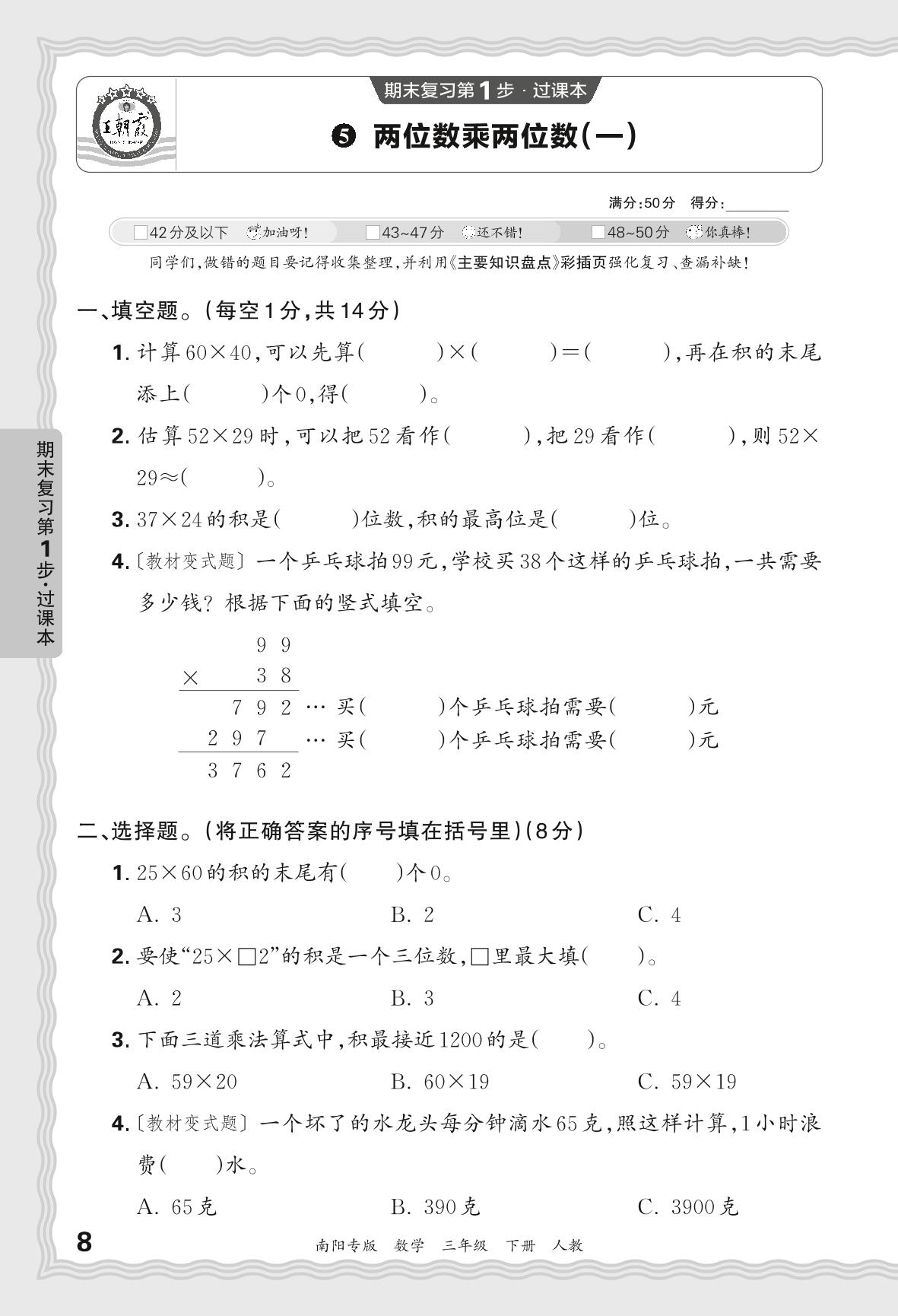 2024春下册三年级数学人教版 期末过课本南阳版·两位数乘两位数(一)【5】