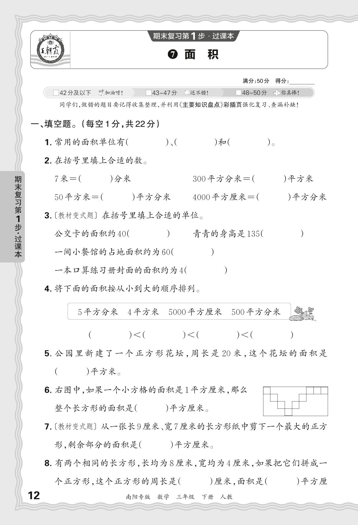 2024春下册三年级数学人教版 期末过课本南阳版·面积【7】
