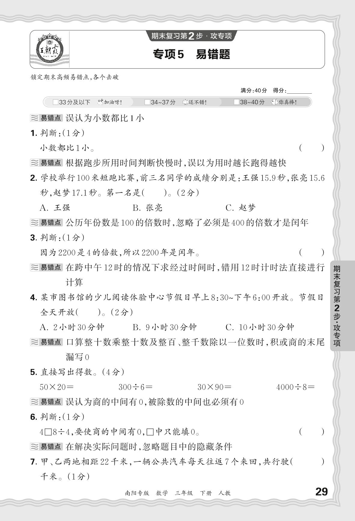 2024春下册三年级数学人教版 期末专项卷南阳版·易错题【5】