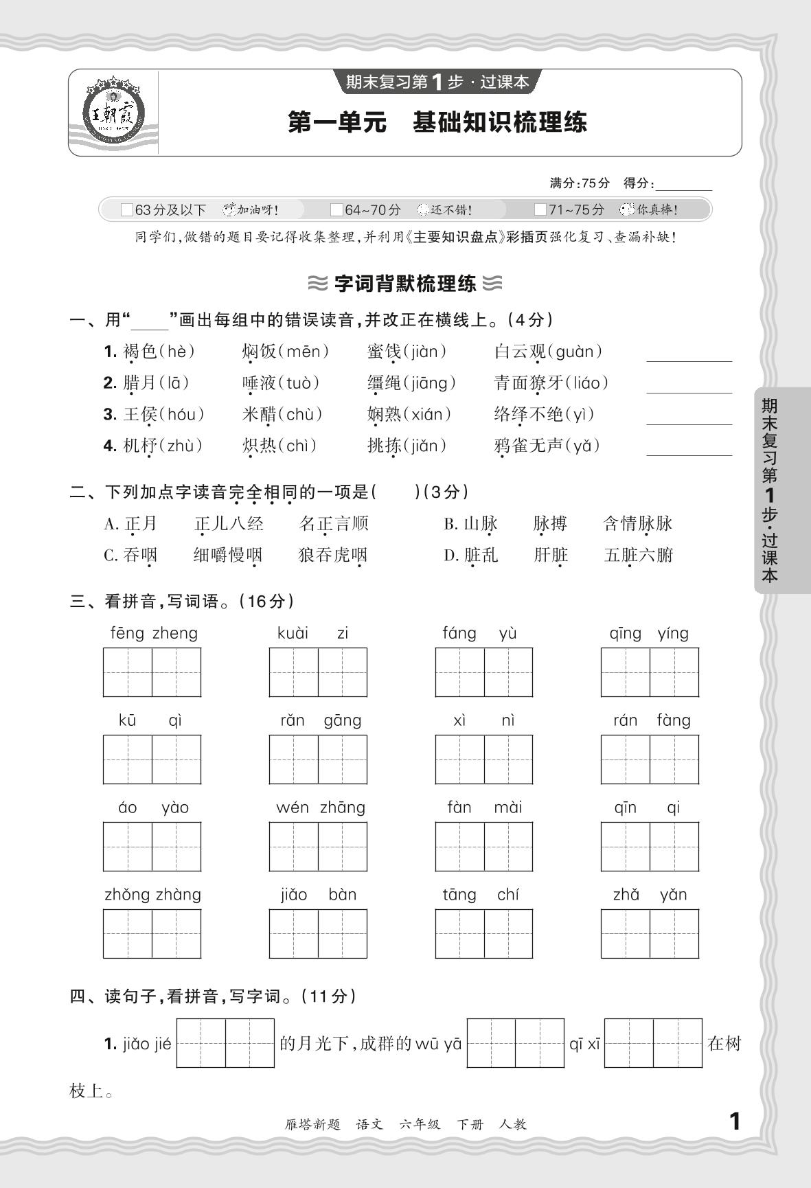 2024春下册六年级语文人教版 期末过课本西安版·第一单元 基础知识梳理练