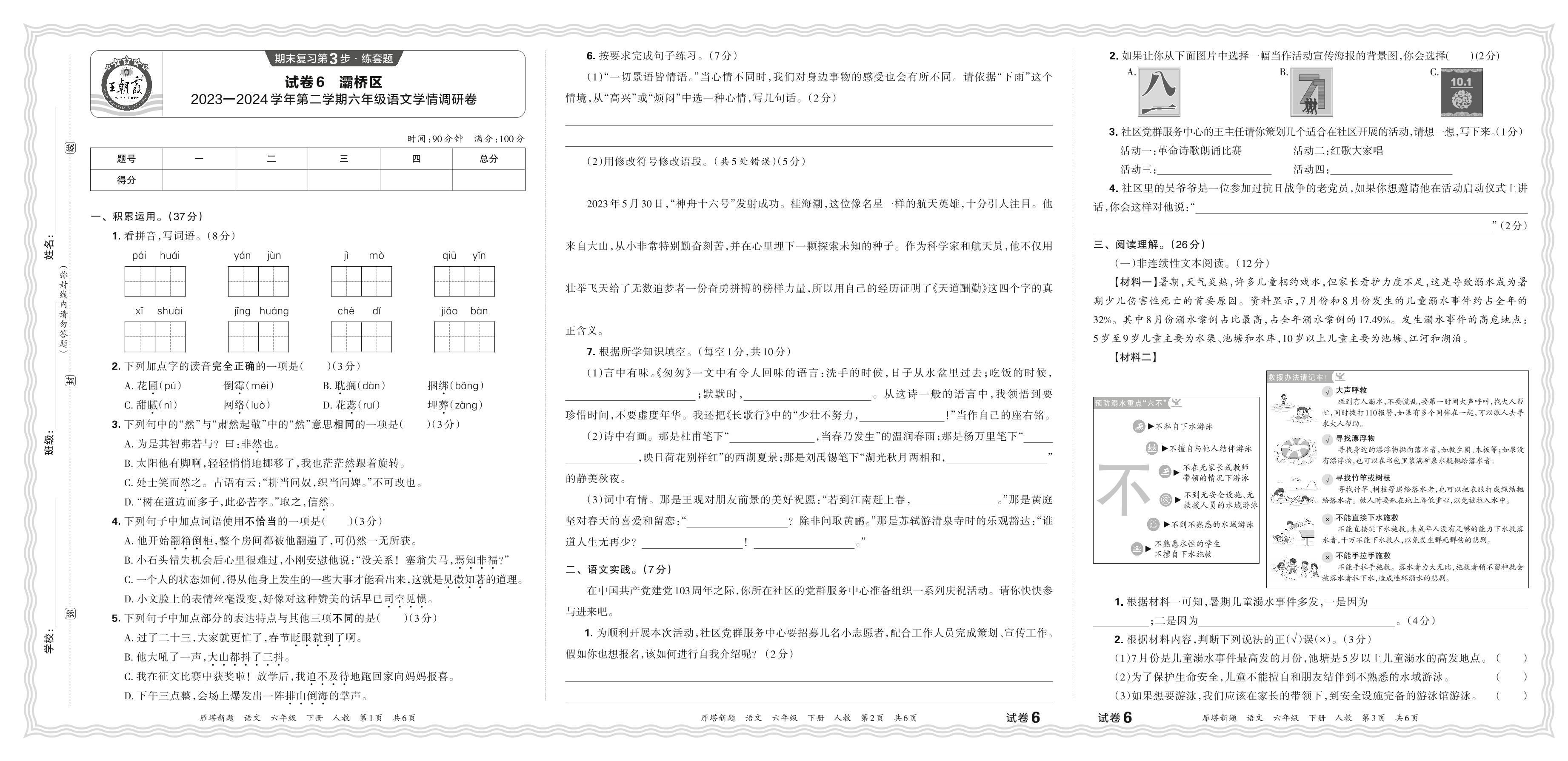 陕西省西安市灞桥区2023—2024学年第二学期六年级语文学情调研卷(人教版)【6】
