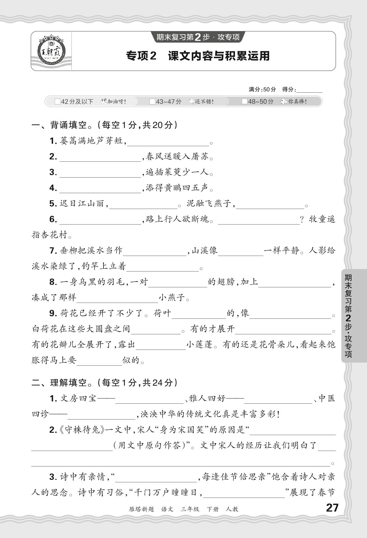 2024春下册三年级语文人教版 期末专项卷西安版·课文内容与积累运用【2】