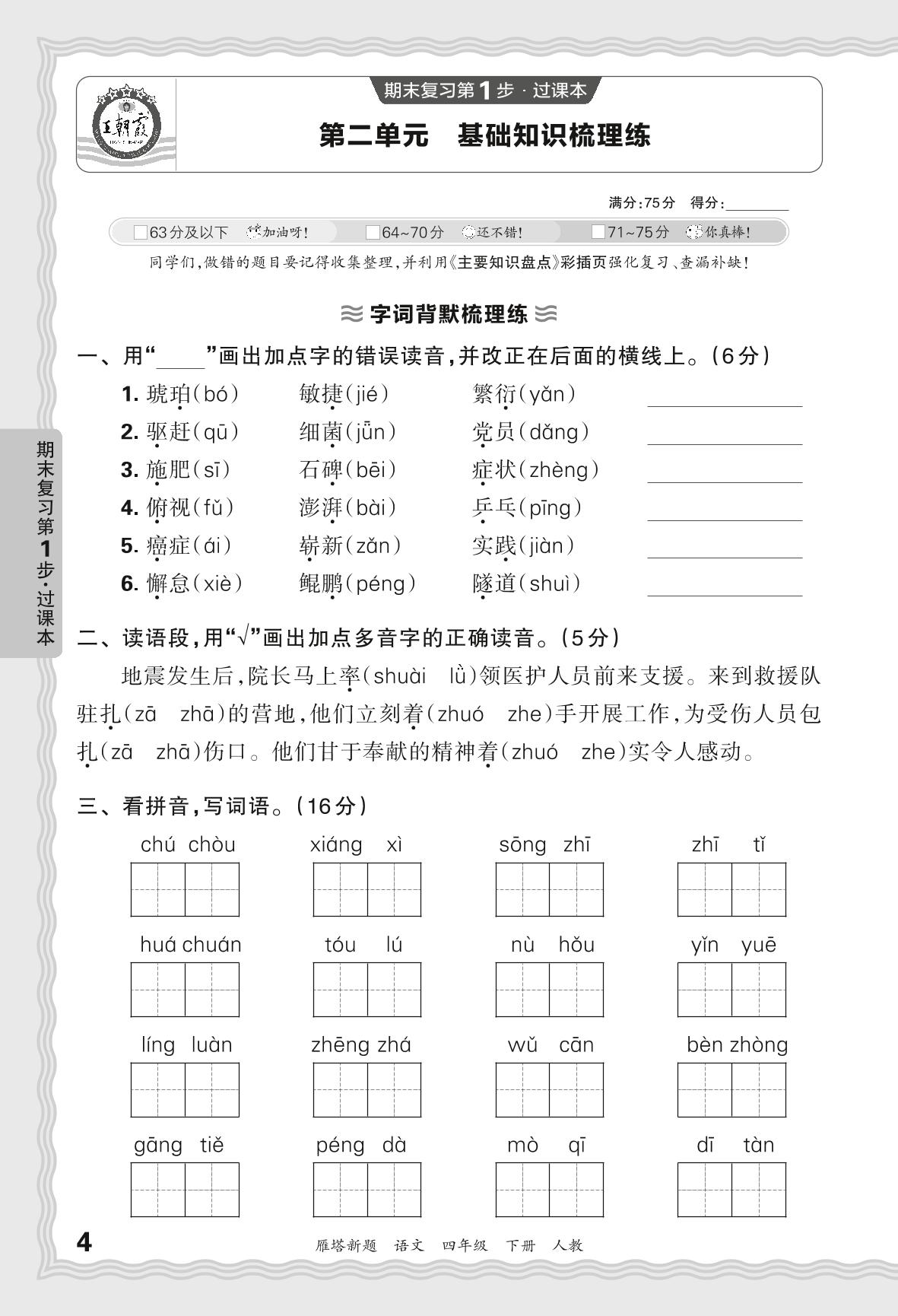 2024春下册四年级语文人教版 期末过课本西安版·第二单元 基础知识梳理练