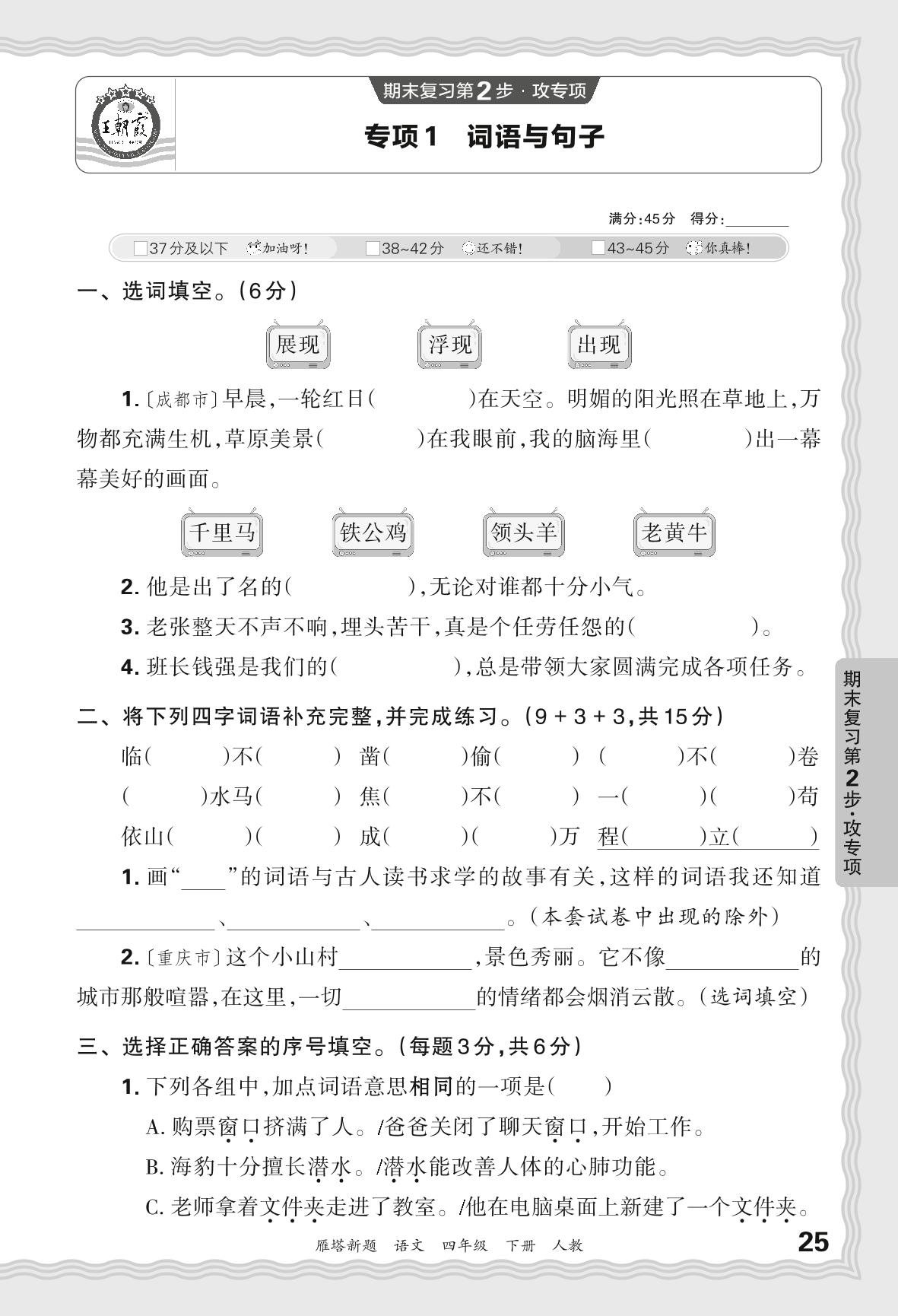 2024春下册四年级语文人教版 期末专项卷西安版·词语与句子【1】