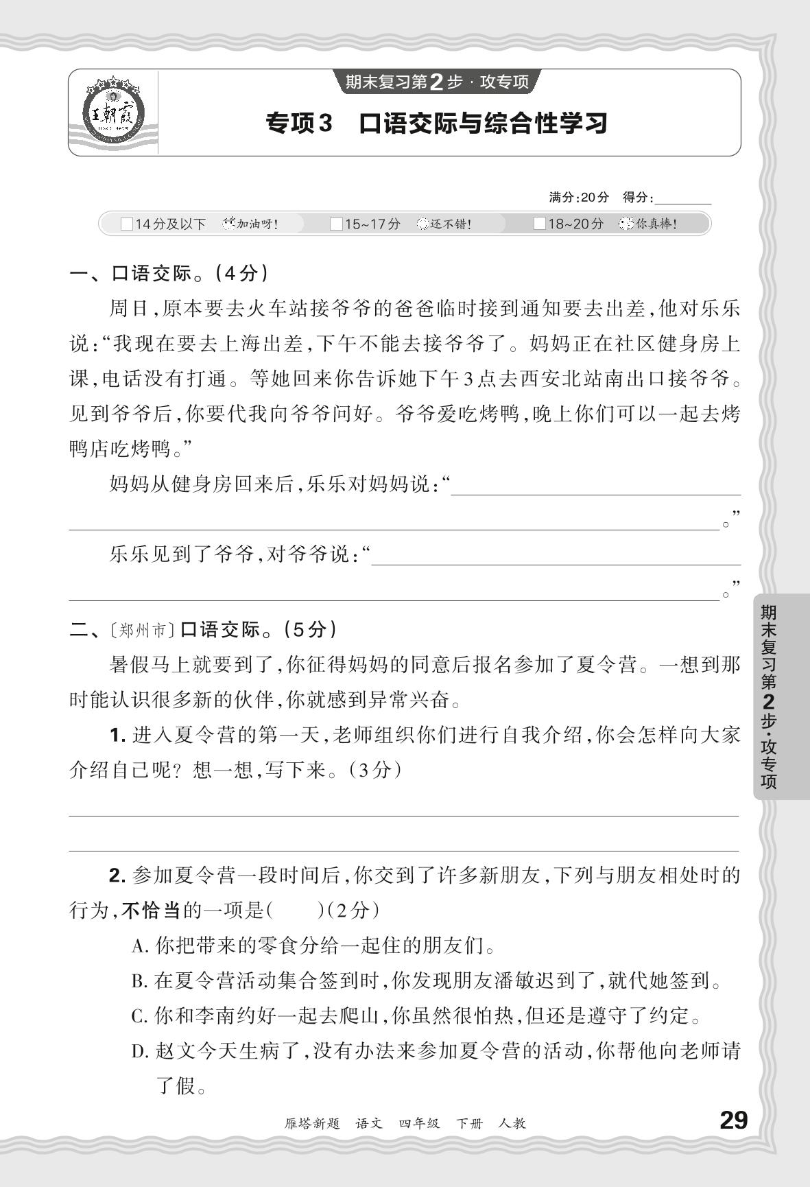 2024春下册四年级语文人教版 期末专项卷西安版·口语交际与综合性学习【3】