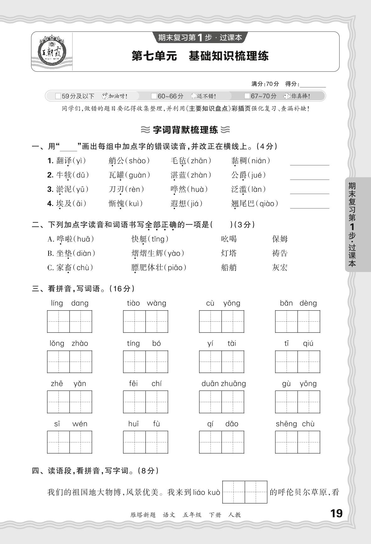 2024春下册五年级语文人教版 期末过课本西安版·第七单元 基础知识梳理练