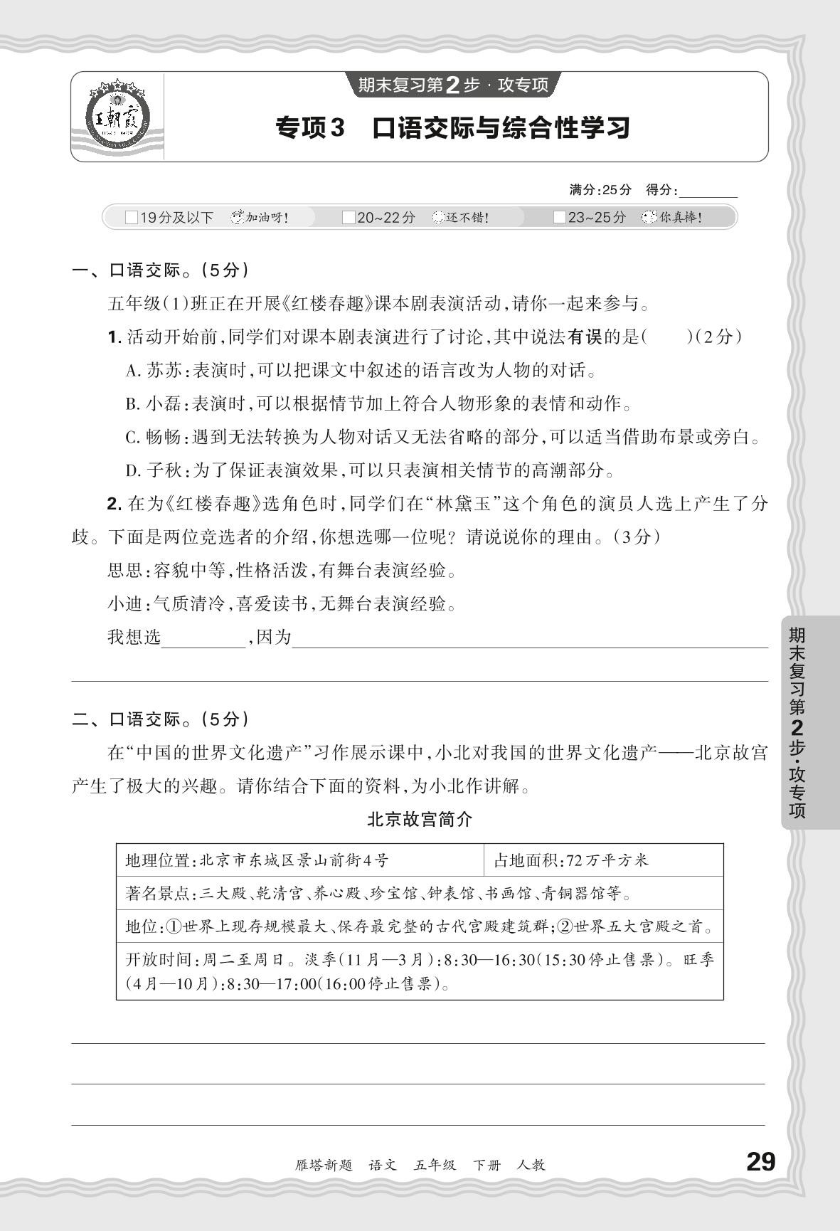 2024春下册五年级语文人教版 期末专项卷西安版·口语交际与综合性学习【3】