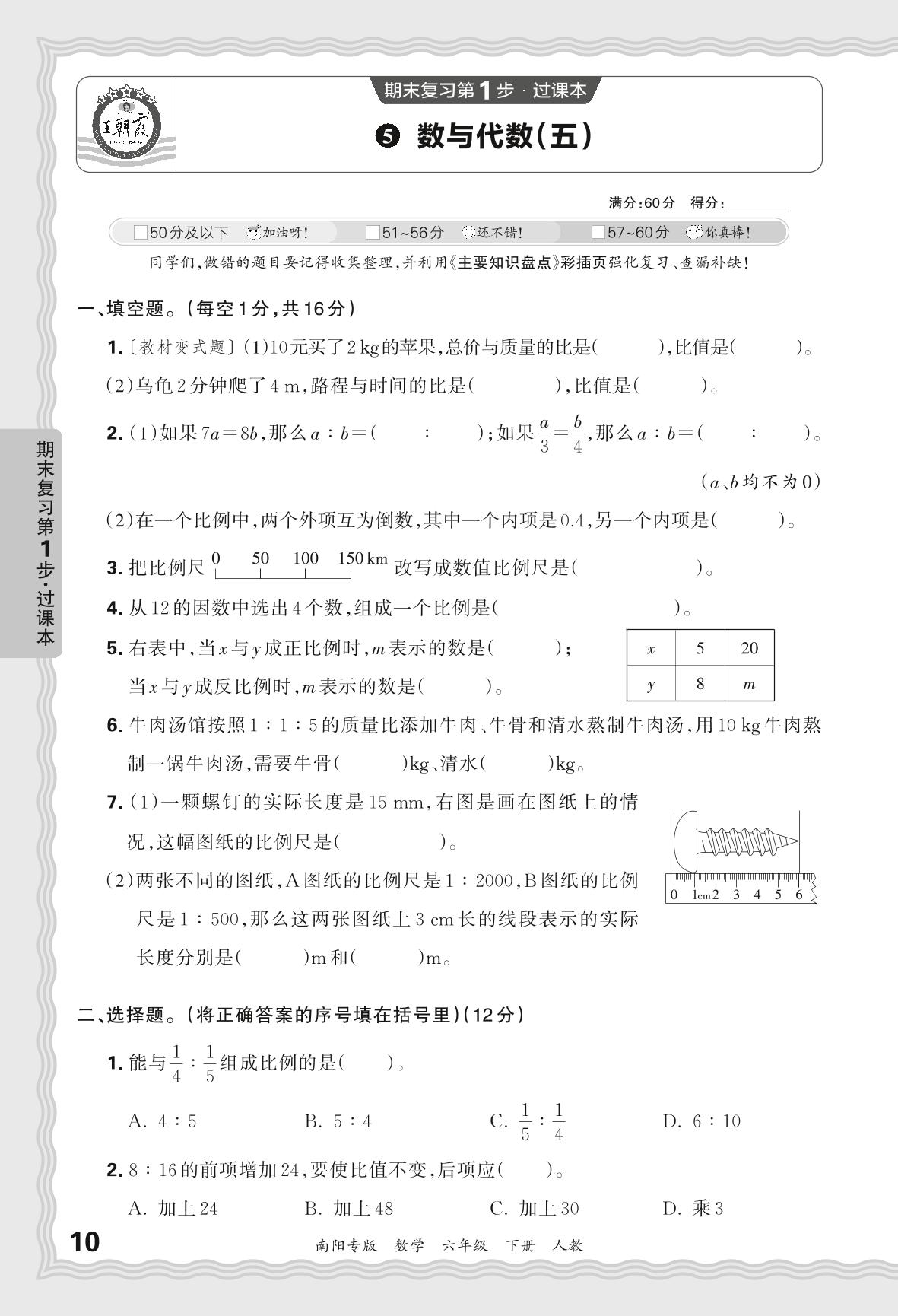 2024春下册六年级数学人教版 期末过课本南阳版·数与代数(五)