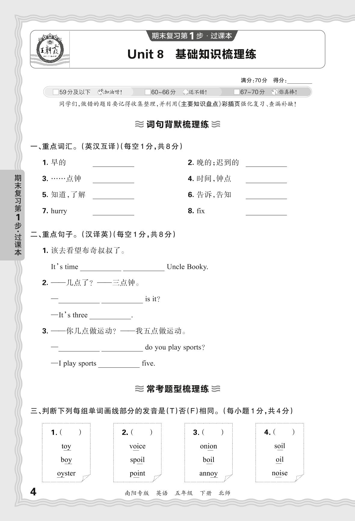 2024春下册五年级英语北师版 期末过课本南阳版·Unit 8 基础知识梳理练
