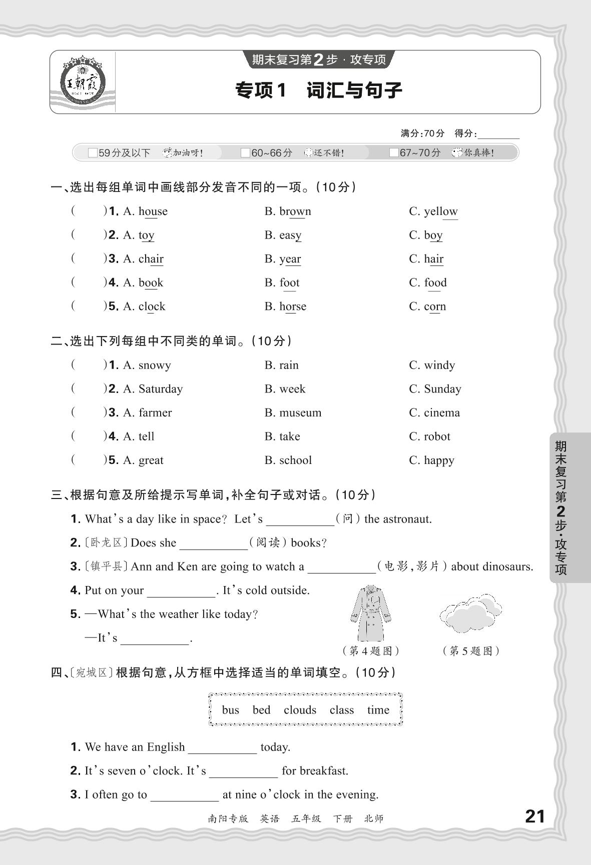 2024春下册五年级英语北师版 期末专项卷南阳版·词汇与句子【1】