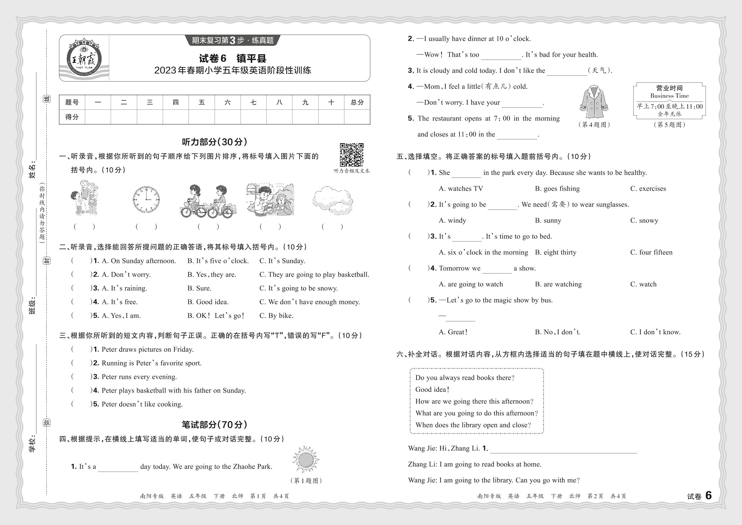 河南省南阳市镇平县2023年春期小学五年级英语阶段性训练(北师版)【6】