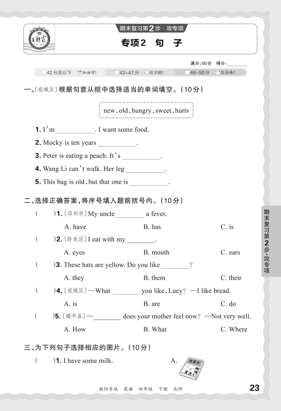 2024春下册四年级英语北师版 期末专项卷南阳版·句子【2】