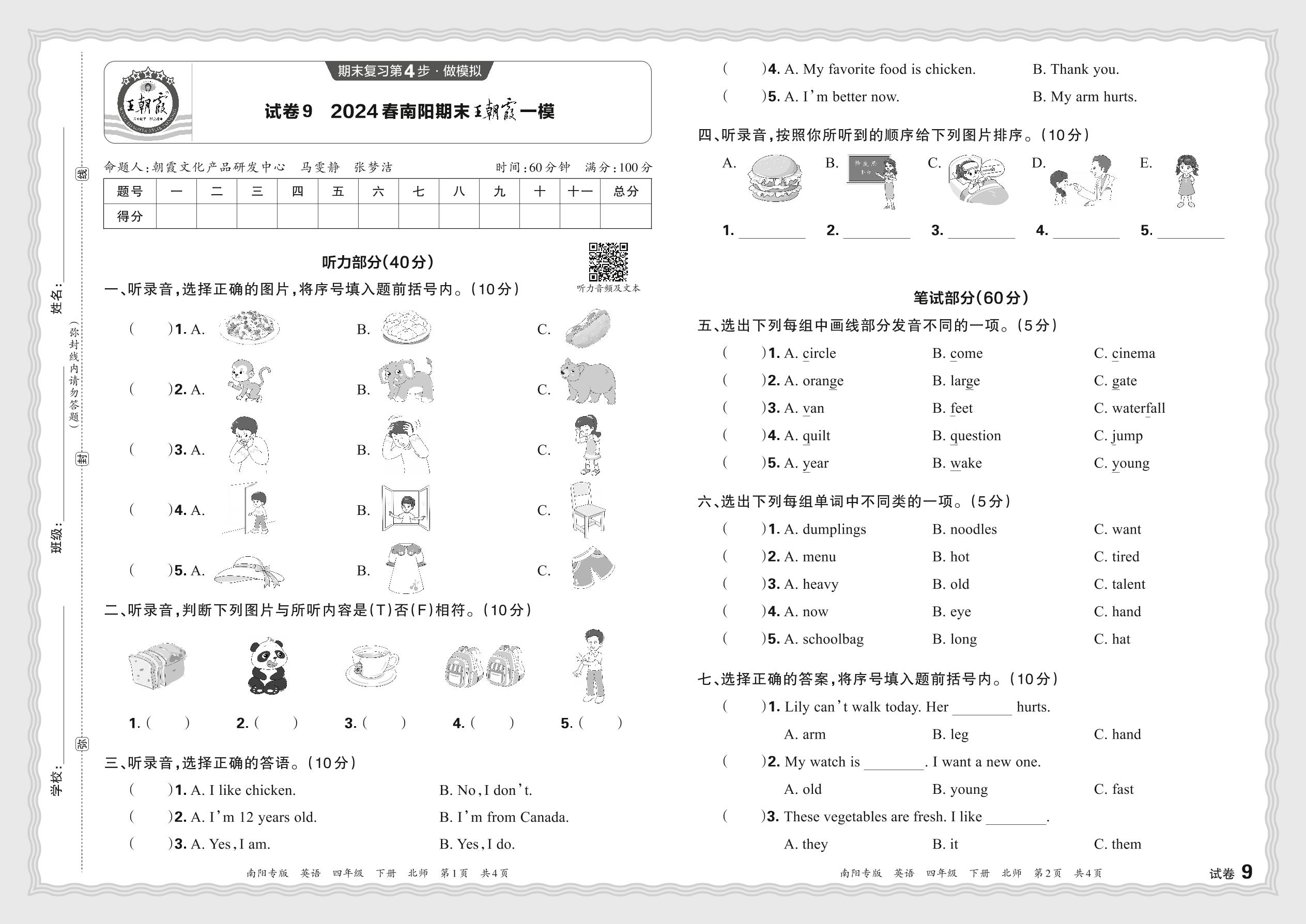 2024春下册四年级英语北师版 河南南阳期末王朝霞一模【9】