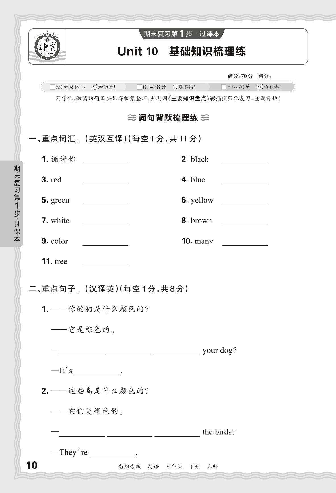 2024春下册三年级英语北师版 期末过课本南阳版·Unit 10 基础知识梳理练