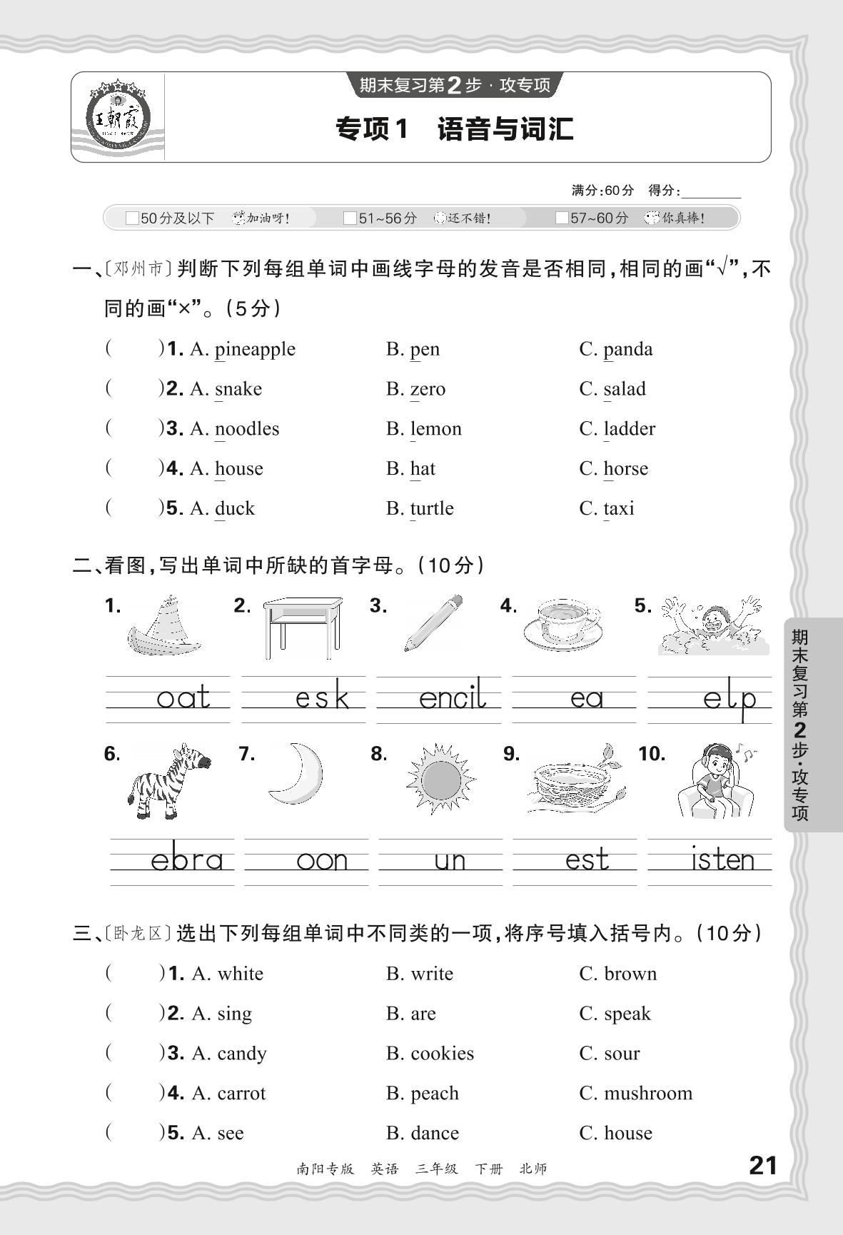 2024春下册三年级英语北师版 期末专项卷南阳版·语音与词汇【1】