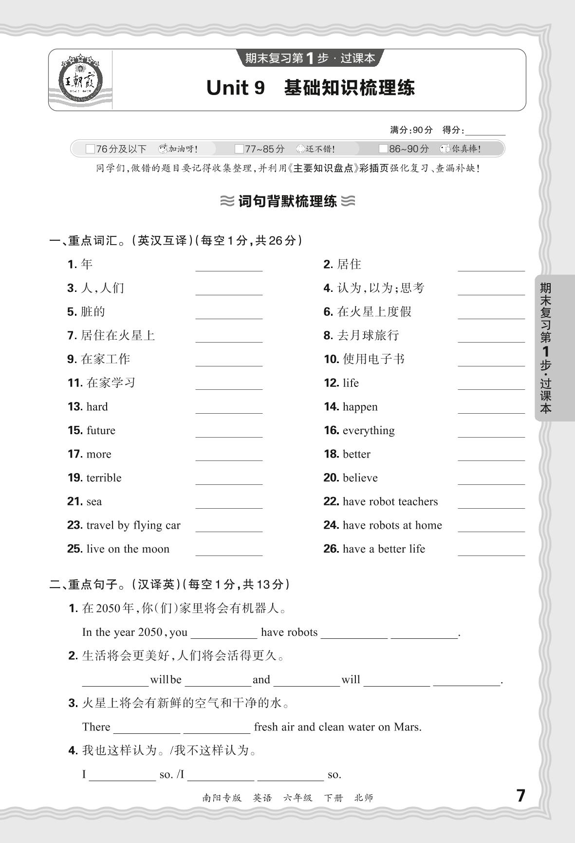 2024春下册六年级英语北师版 期末过课本南阳版·Unit 9 基础知识梳理练