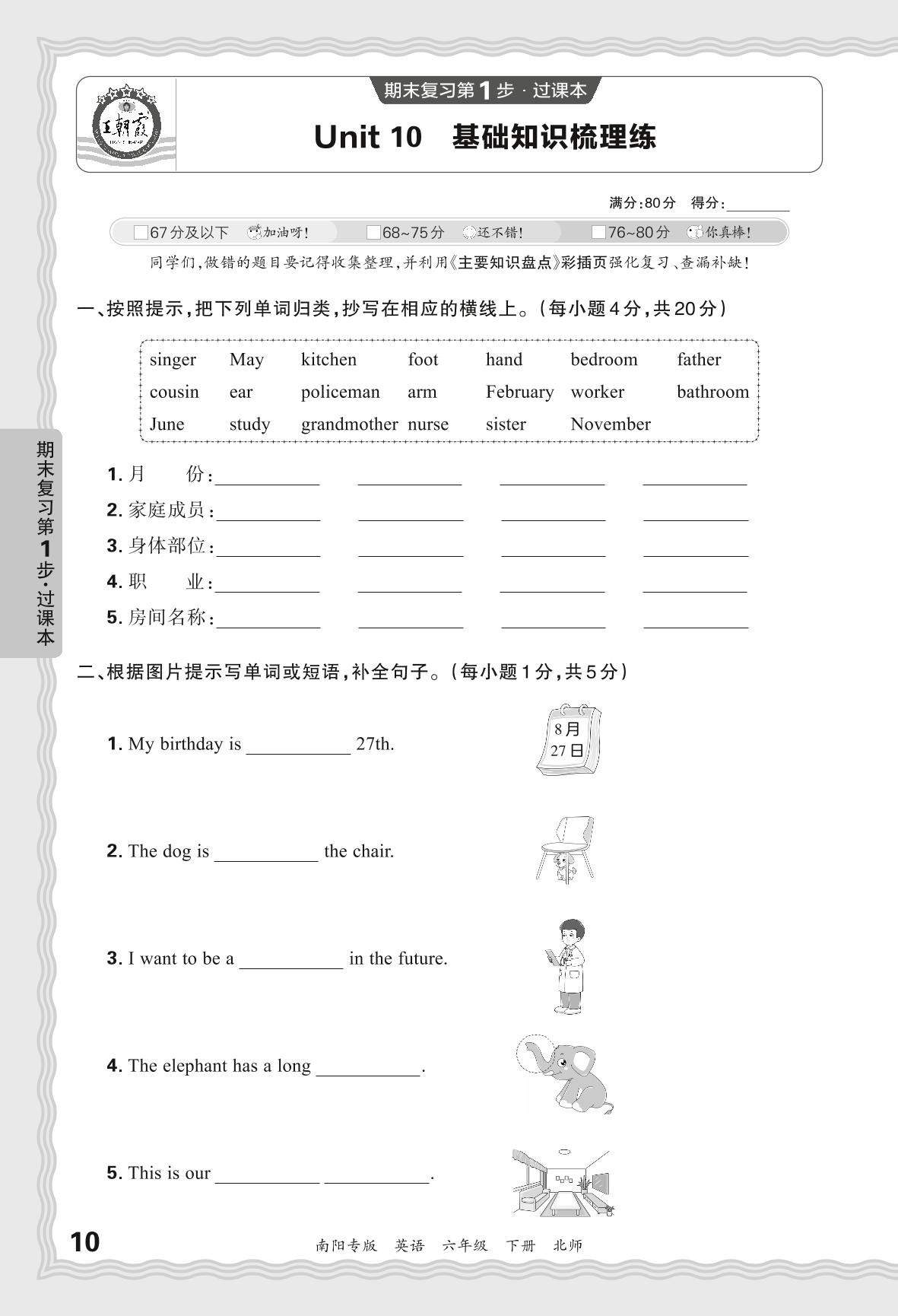 2024春下册六年级英语北师版 期末过课本南阳版·Unit 10 基础知识梳理练