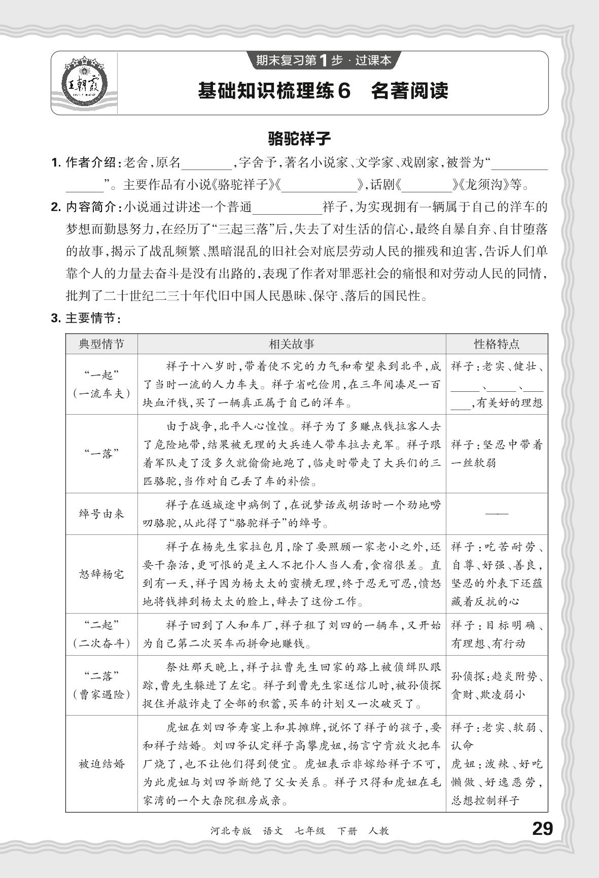 2024春下册七年级语文人教版 期末过课本河北版·基础知识梳理练 名著阅读【6】