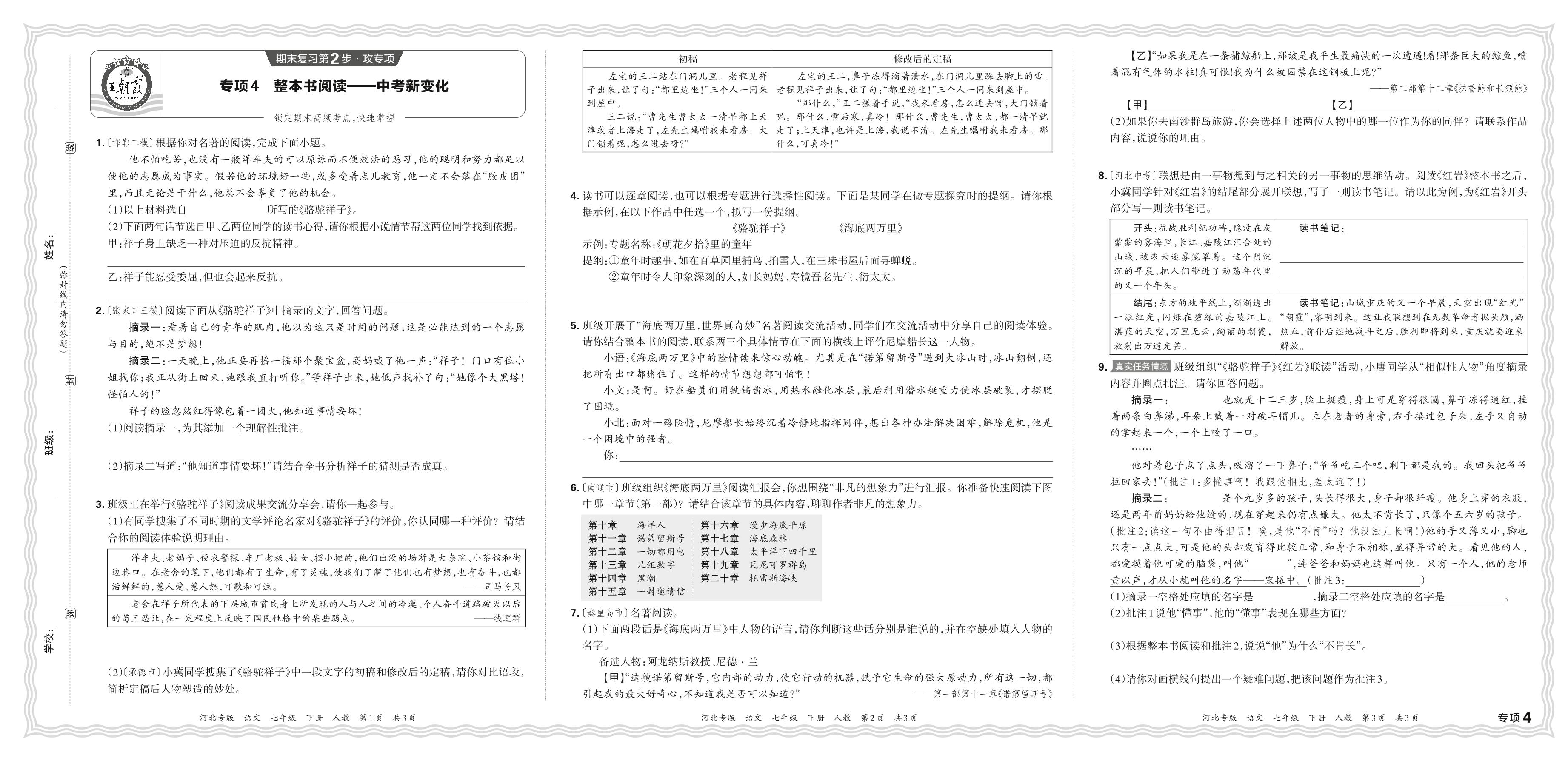 2024春下册七年级语文人教版 期末专项卷河北版·整本书阅读——中考新变化【4】