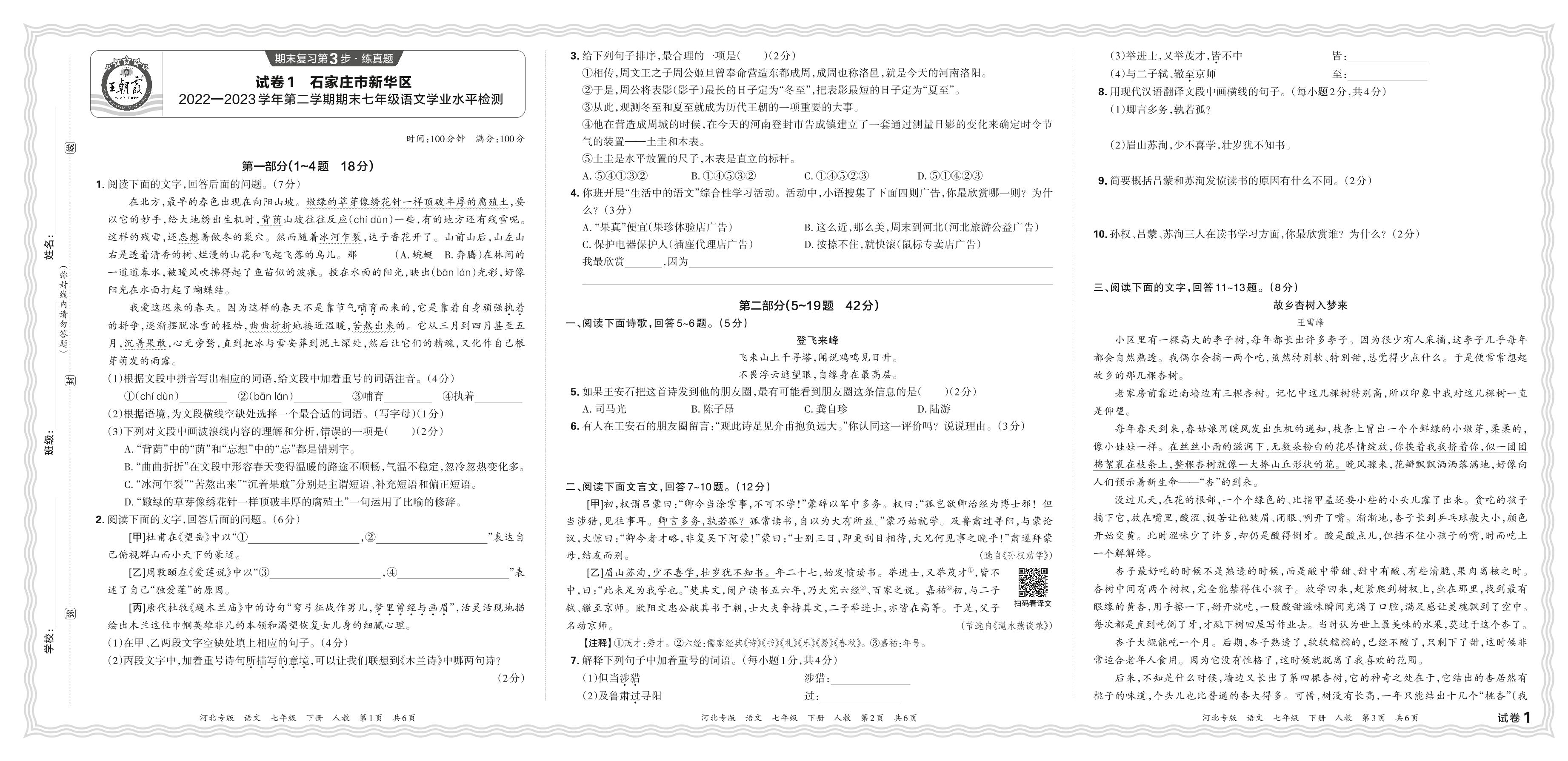 河北省石家庄市新华区2022-2023学年第二学期期末七年级语文学业水平检测(人教版)【1】
