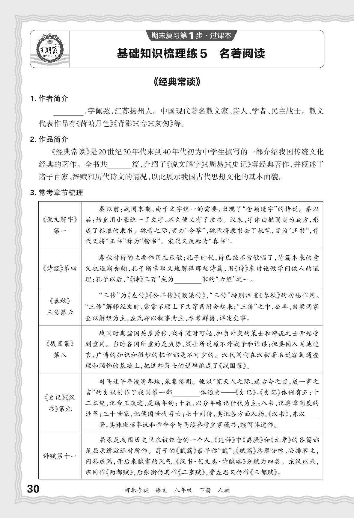 2024春下册八年级语文人教版 期末过课本河北版·基础知识梳理练 名著阅读【5】