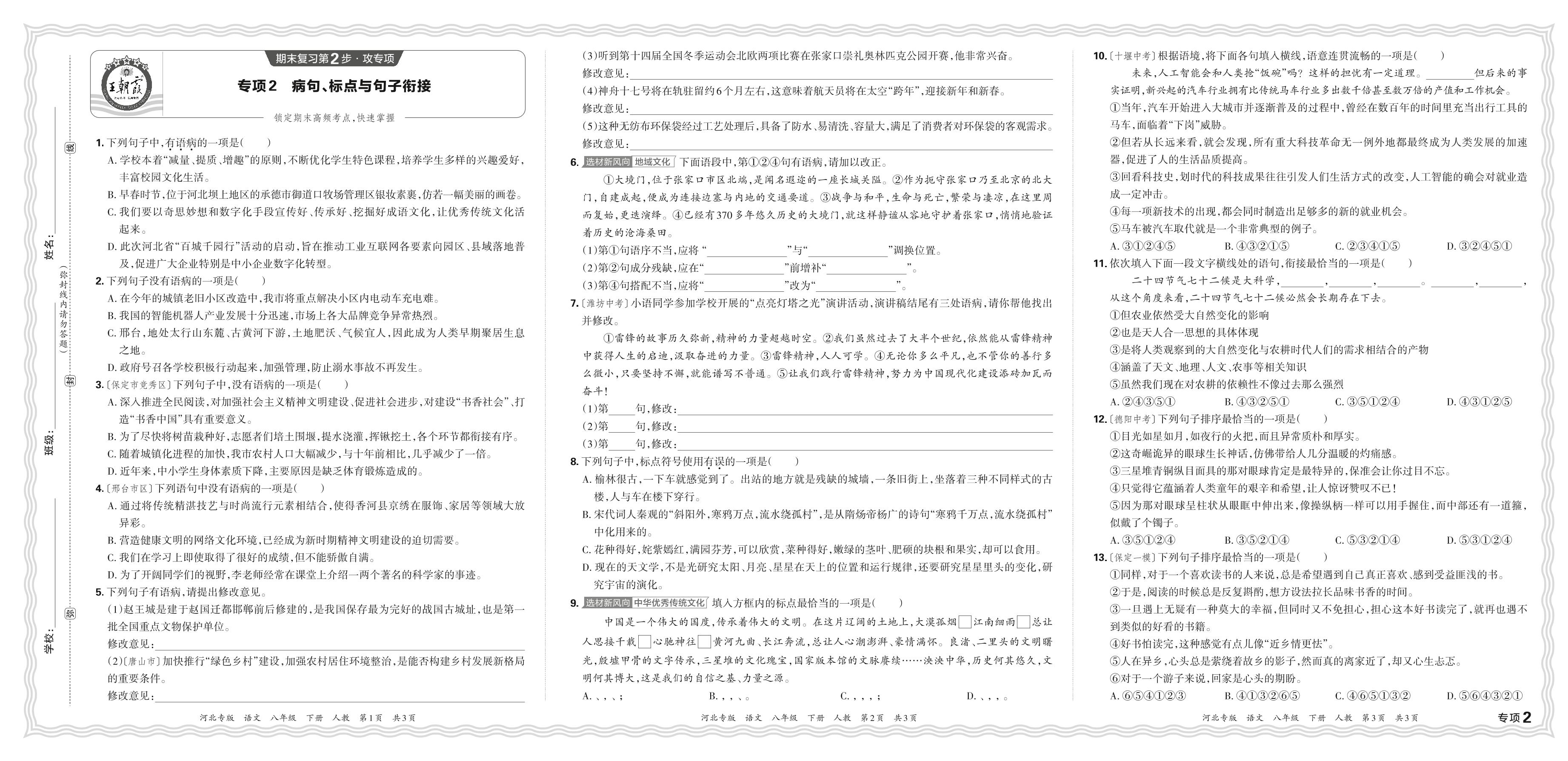 2024春下册八年级语文人教版 期末专项卷河北版·病句、标点与句子衔接【2】