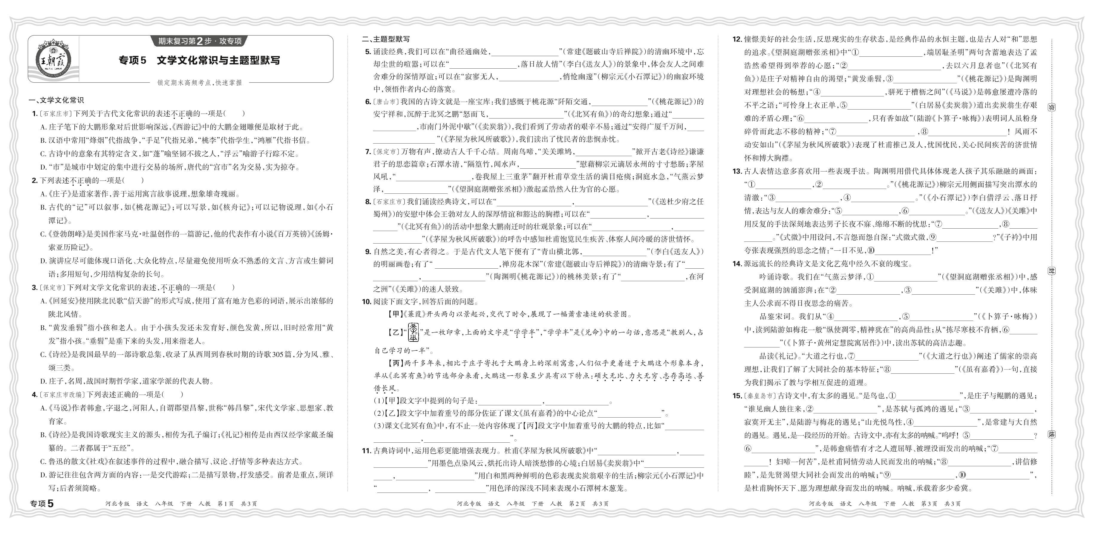 2024春下册八年级语文人教版 期末专项卷河北版·文学文化常识与主题型默写【5】