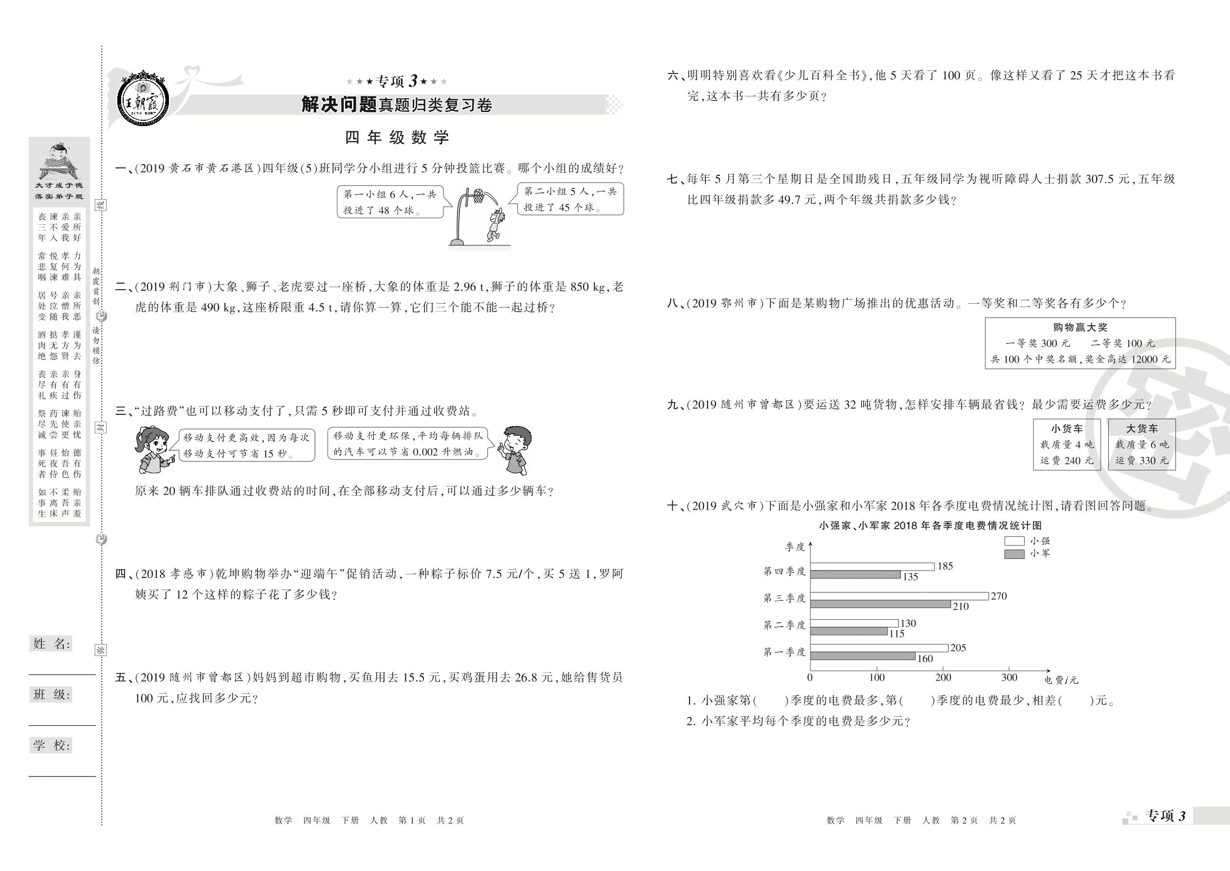 王朝霞期末专项卷——解决问题真题归类复习卷、新颖题速递:生活与数学四年级下册数学(人教版)_R210804142639【0】