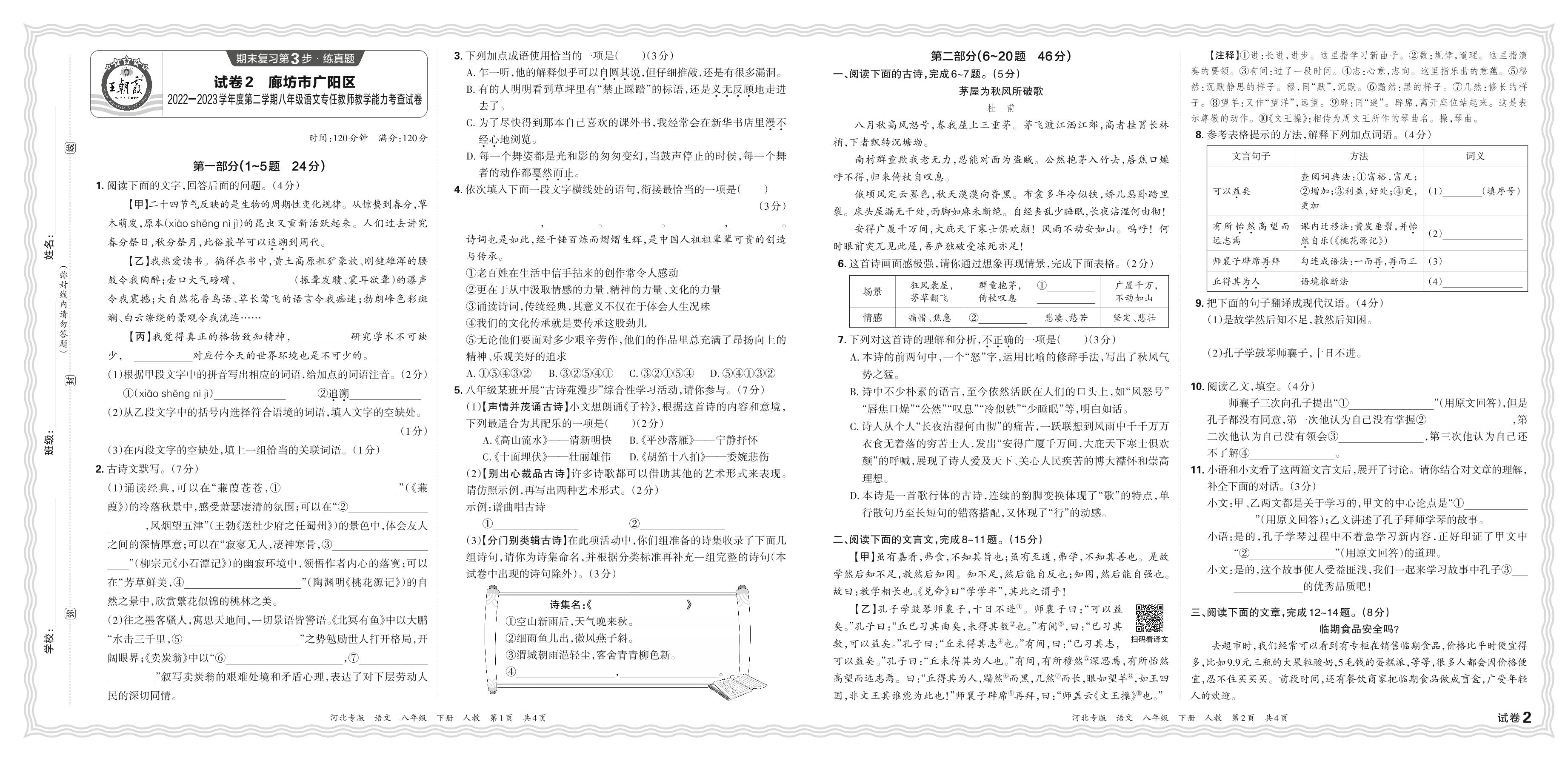 河北省廊坊市广阳区2022-2023学年度第二学期八年级语文专任教师教学能力考查试卷(人教版)【2】