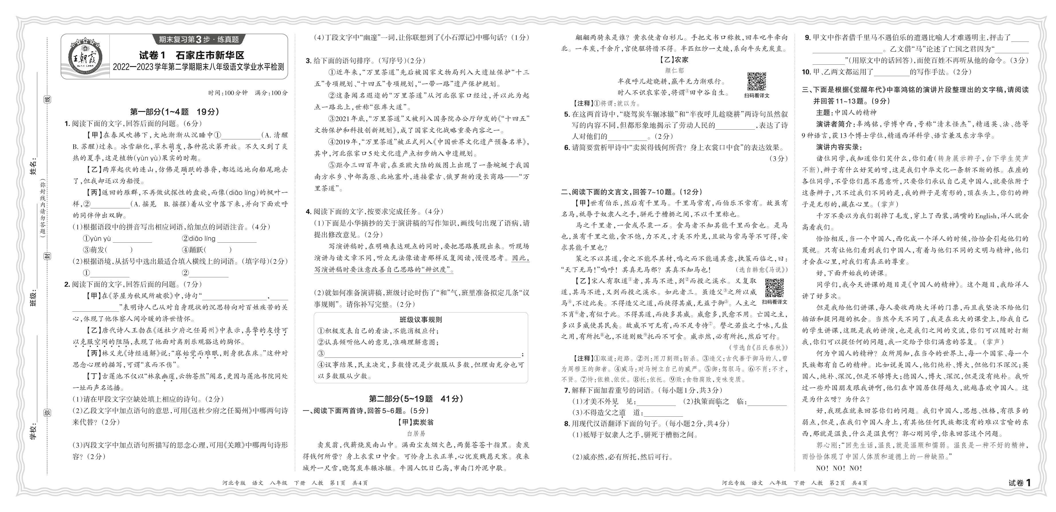 河北省石家庄市新华区2022-2023学年第二学期期末八年级语文学业水平检测(人教版)【1】