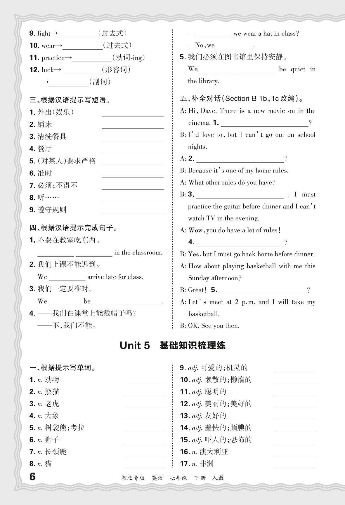 2024春下册七年级英语人教版 期末过课本河北版·Unit 5 基础知识梳理练
