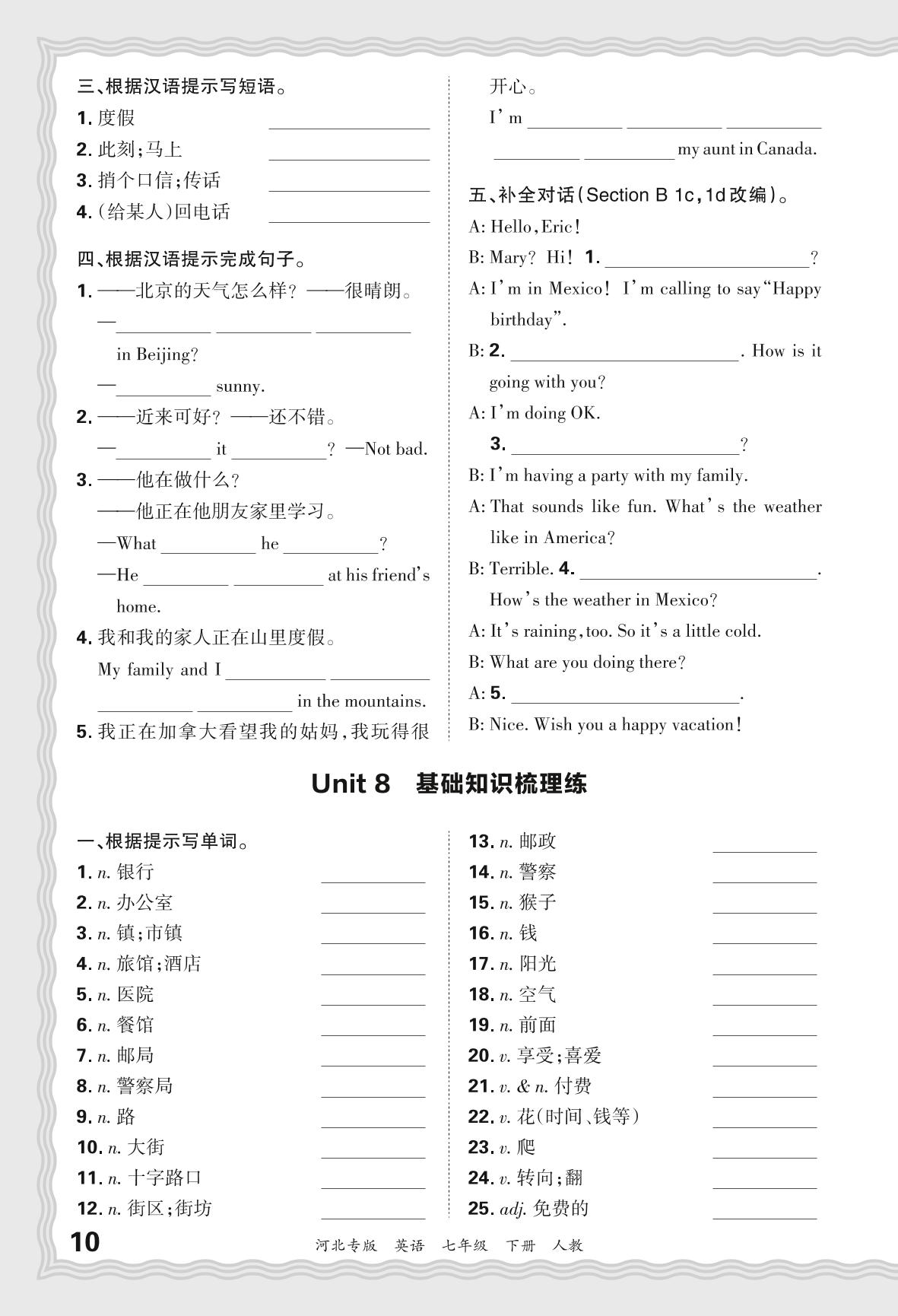 2024春下册七年级英语人教版 期末过课本河北版·Unit 8 基础知识梳理练