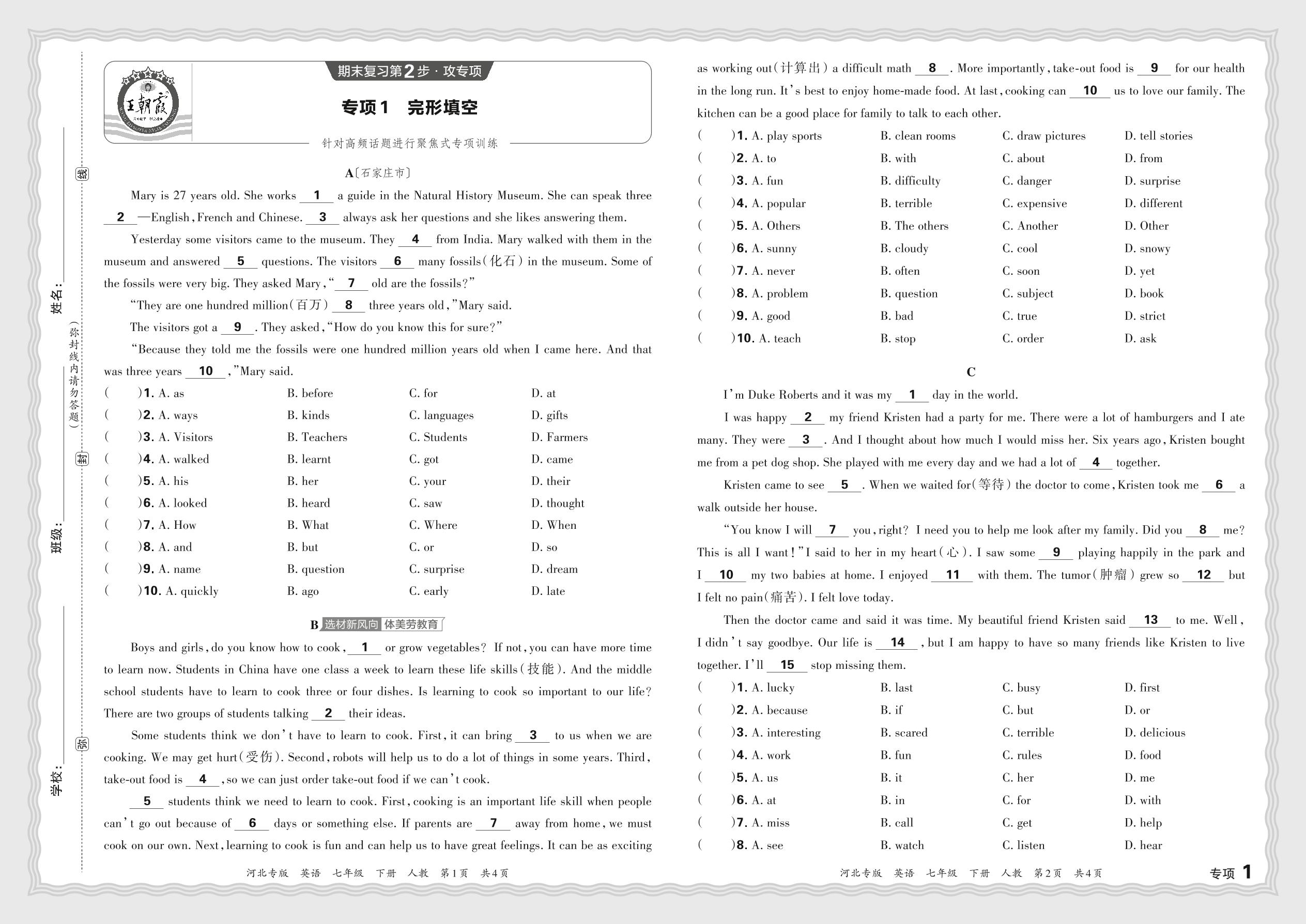 2024春下册七年级英语人教版 期末专项卷河北版·完形填空【1】