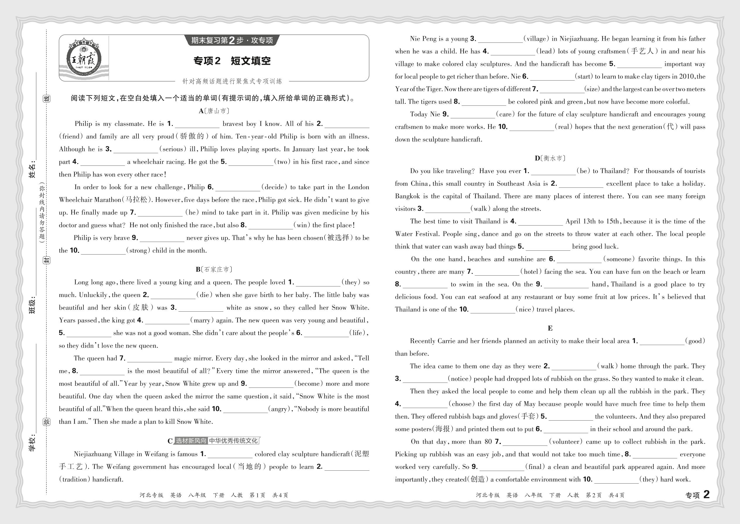 2024春下册八年级英语人教版 期末专项卷河北版·短文填空【2】