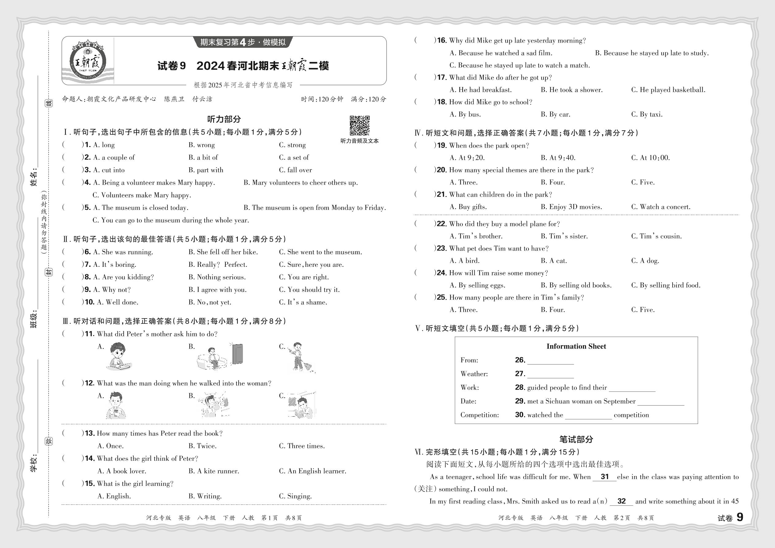 2024春下册八年级英语人教版 河北期末王朝霞二模【9】