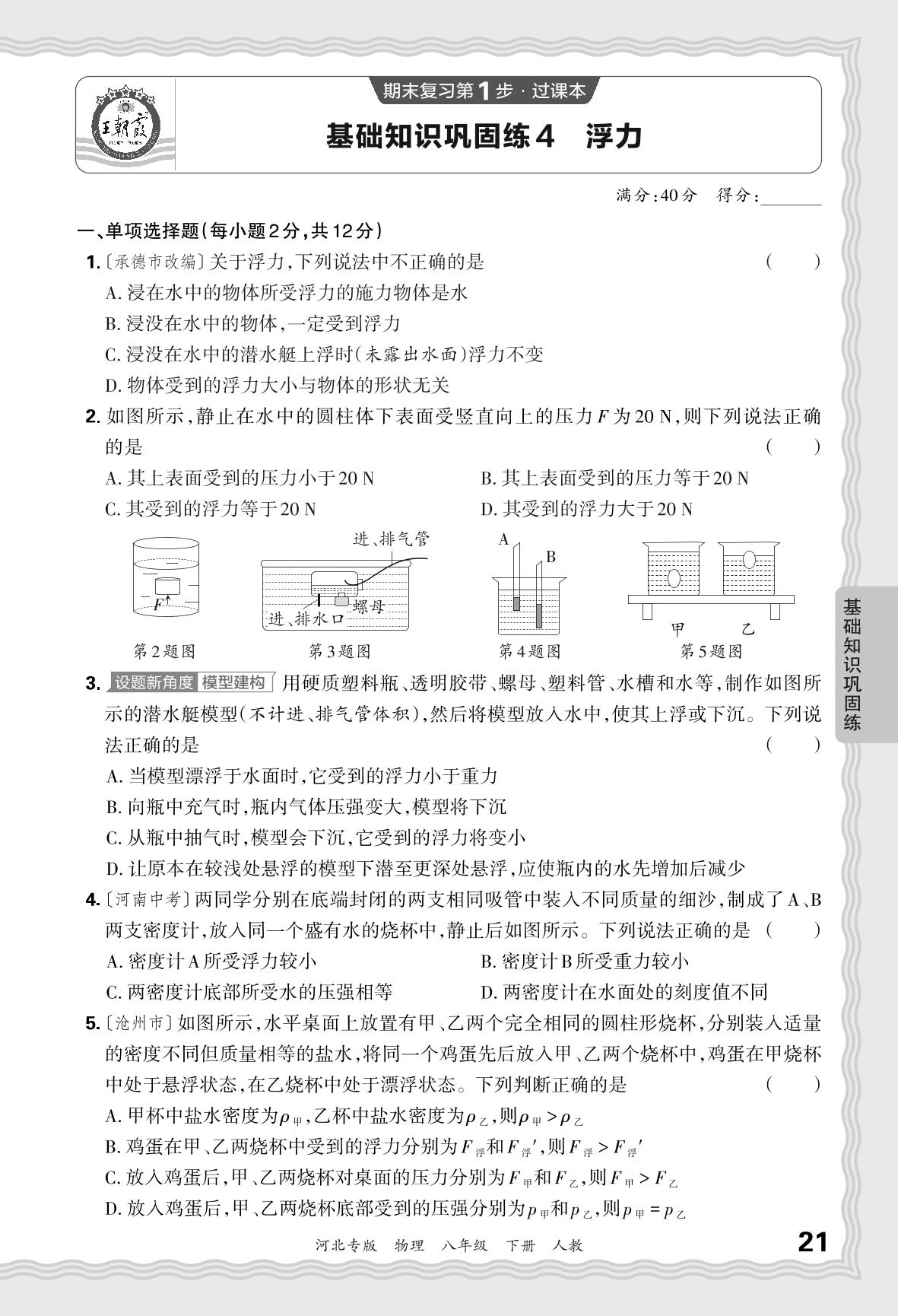 2024春下册八年级物理人教版 期末过课本河北版·基础知识巩固练 浮力【4】