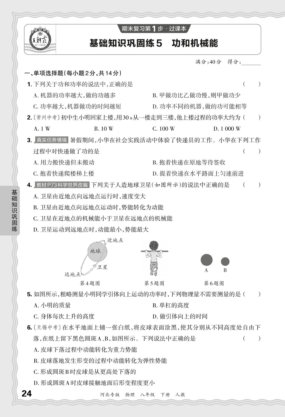 2024春下册八年级物理人教版 期末过课本河北版·基础知识巩固练 功和机械能【5】