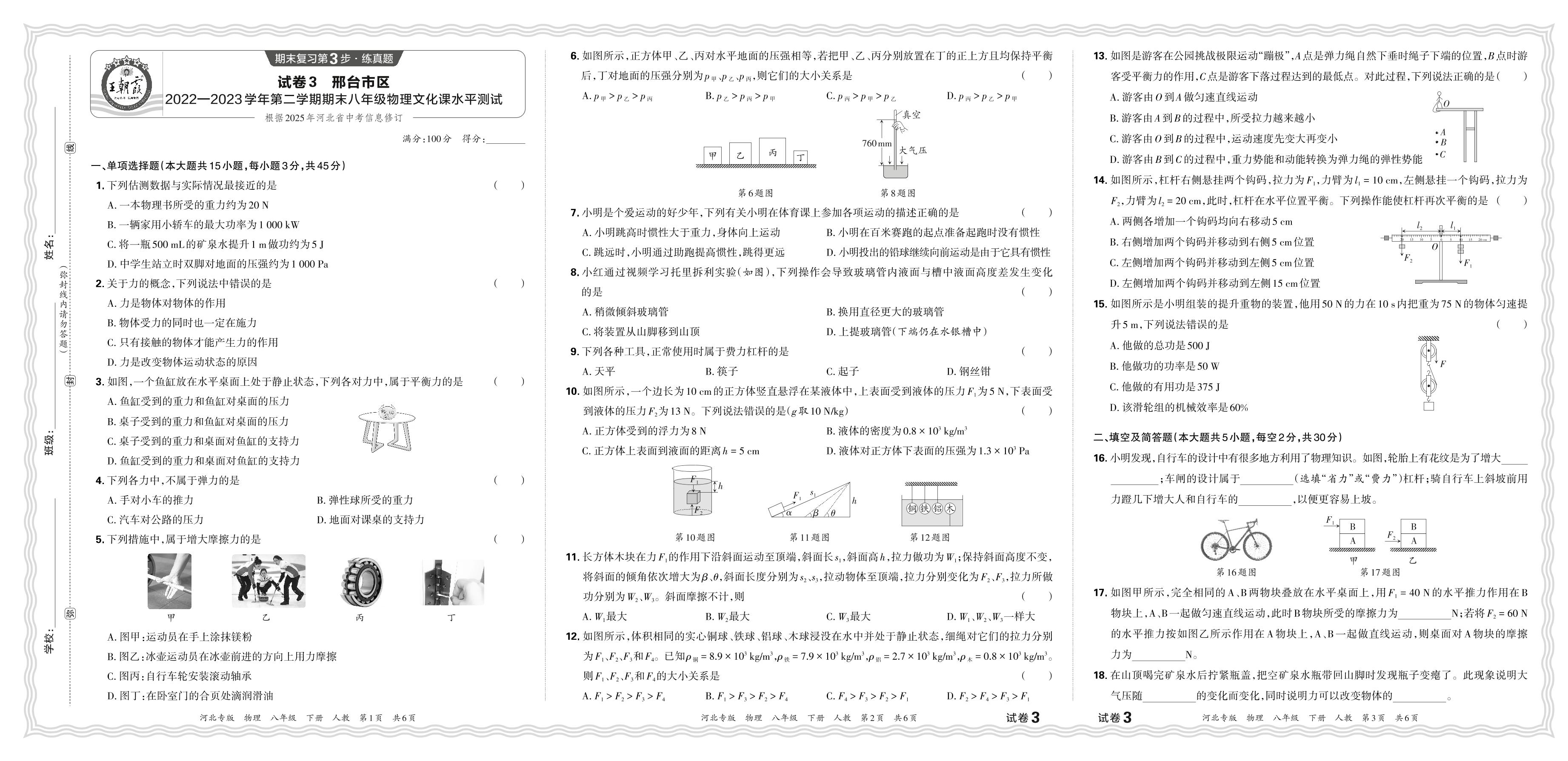 八年级物理人教版下册期末卷