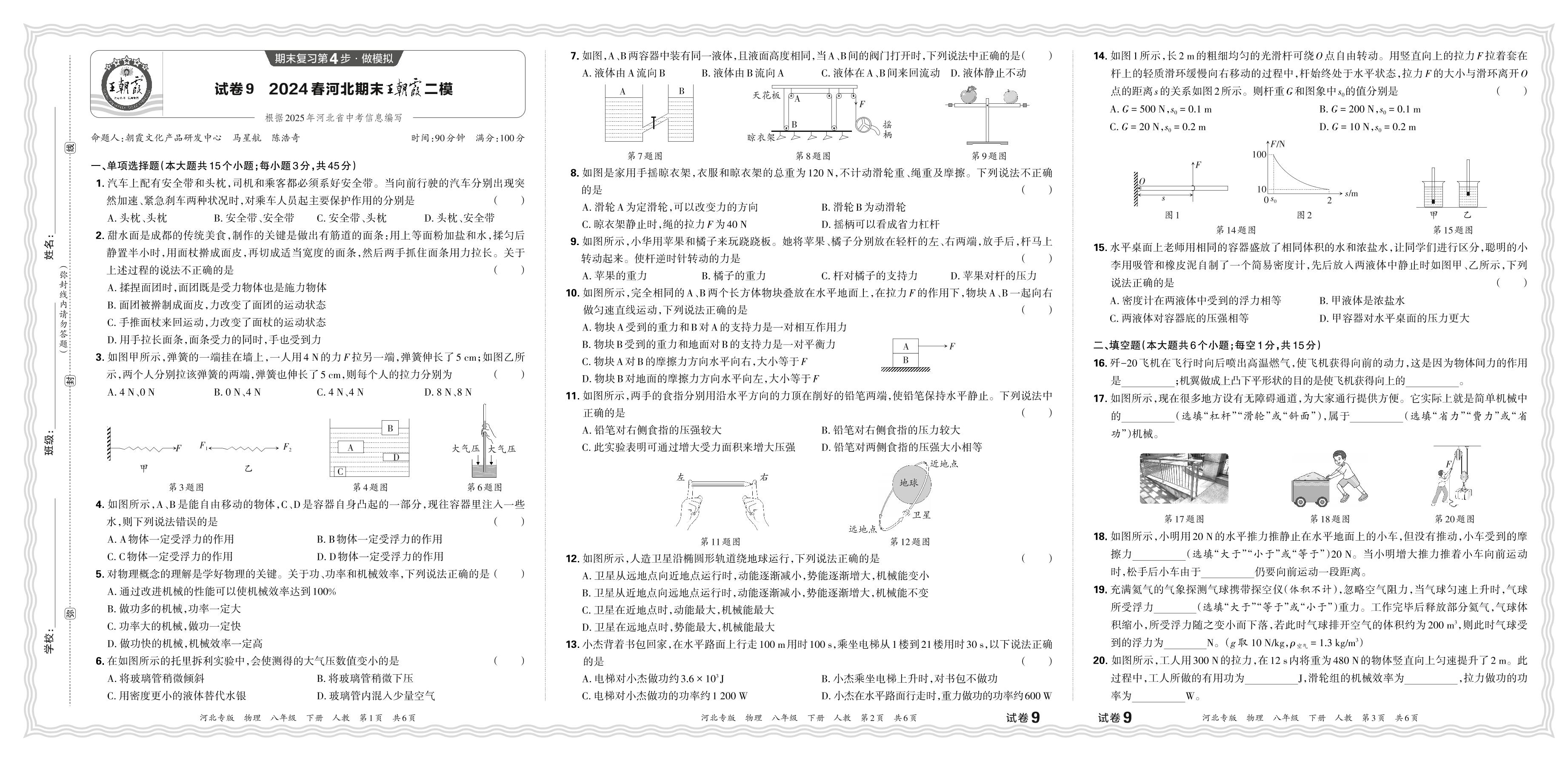 2024春下册八年级物理人教版 河北期末王朝霞二模【9】