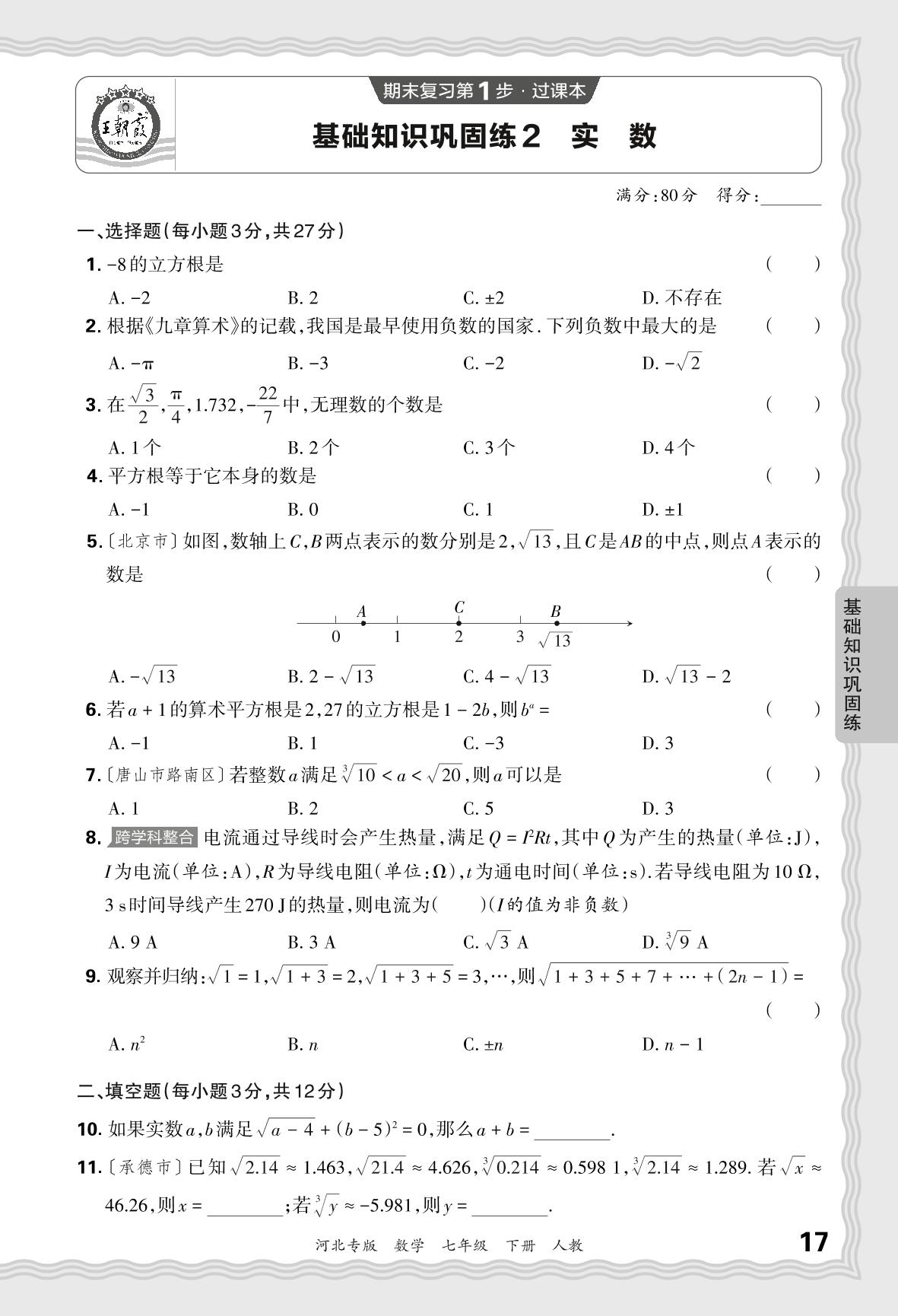 2024春下册七年级数学人教版 期末过课本河北版·基础知识巩固练 实数【2】