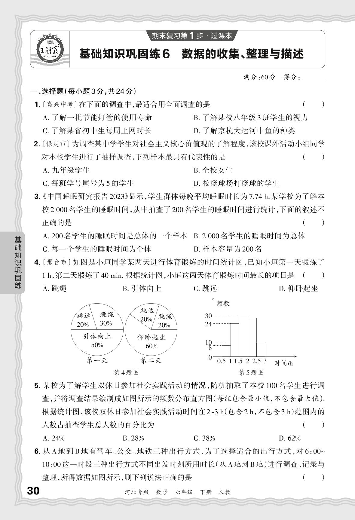 2024春下册七年级数学人教版 期末过课本河北版·基础知识巩固练 数据的收集、整理与描述【6】